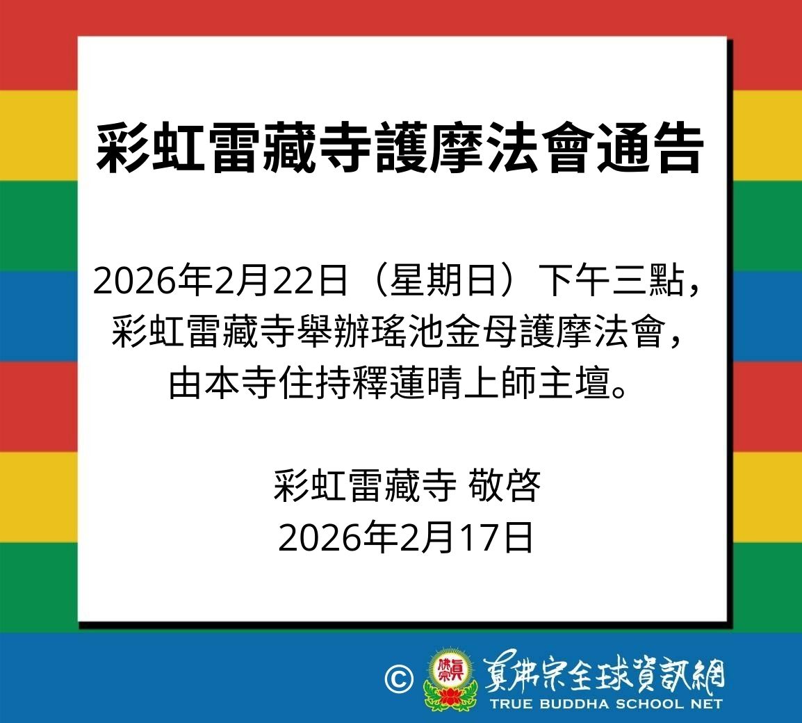 彩虹雷藏寺護摩法會通告 2026年2月22日(星期日)........