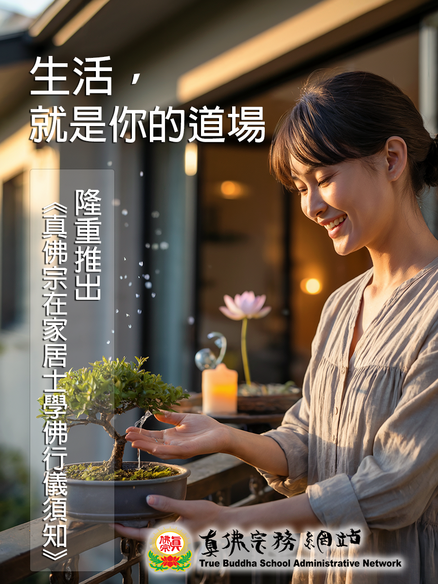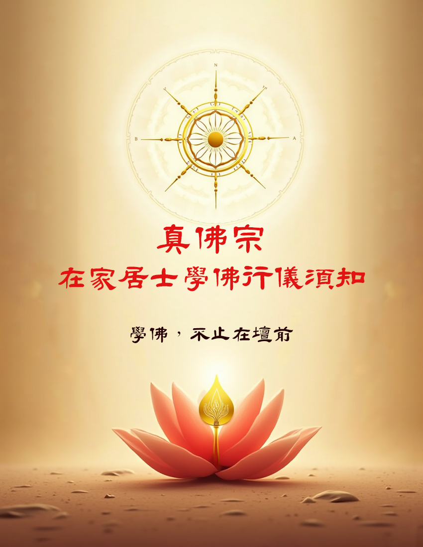 學佛,不止在壇前 生活,就是你的道場。 在家修行,也能安住佛心。 一份簡明的行儀指引, 讓每天的日常,都成為修行的光。 心中有佛,行中有戒,生活即是道場。 世界真佛宗宗務委員會隆重推出《真佛宗在家居士學佛行儀須知》,歡迎所有道場、弘法人員眾同門前往下載閱讀並流通分享給更多善信。 線上閱讀 https://truebuddhaschool.org/site/buddhistpractice
