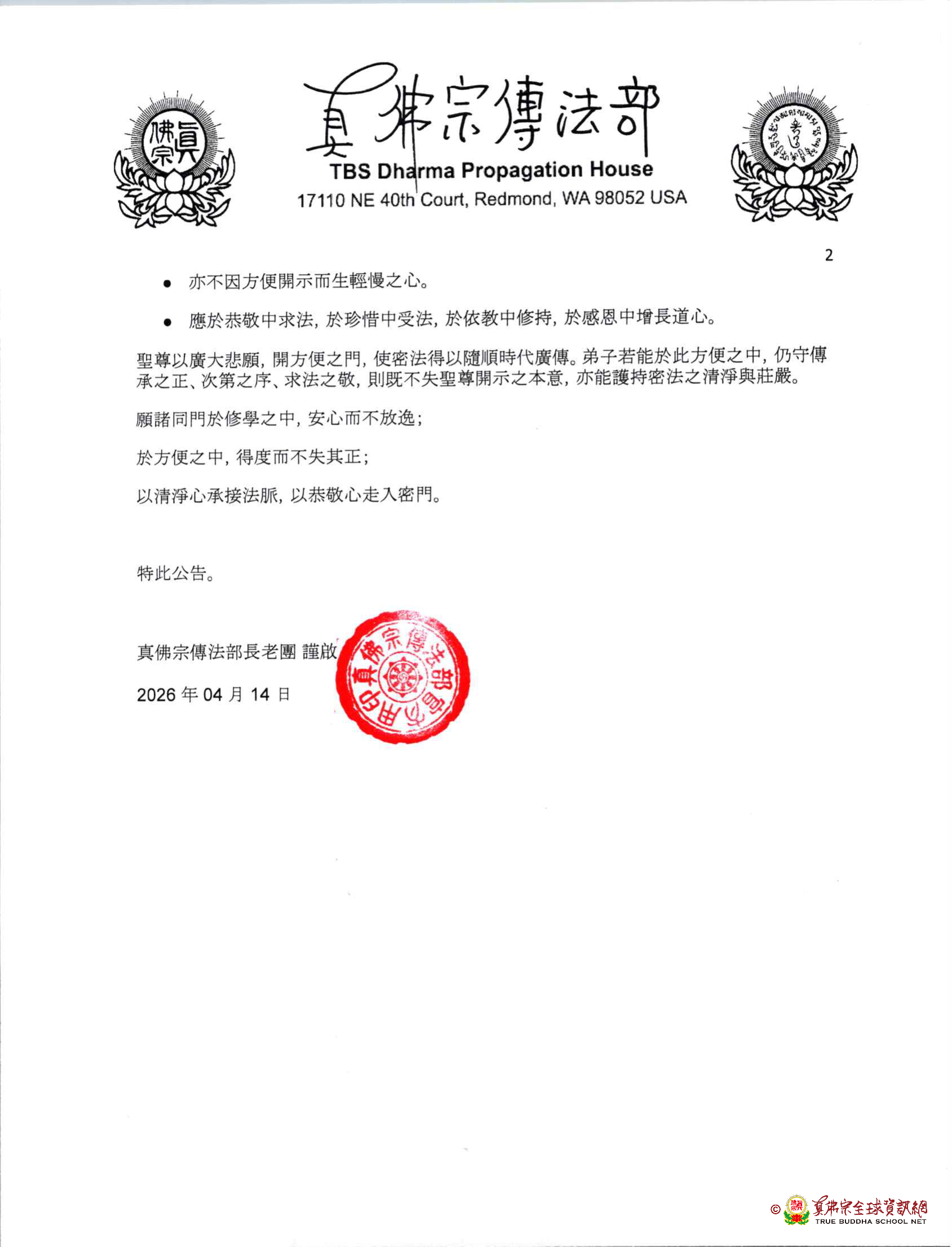 長老團亦謹此提醒,同門於承接聖尊慈悲開解之同時,仍應建立正確之求法觀念。