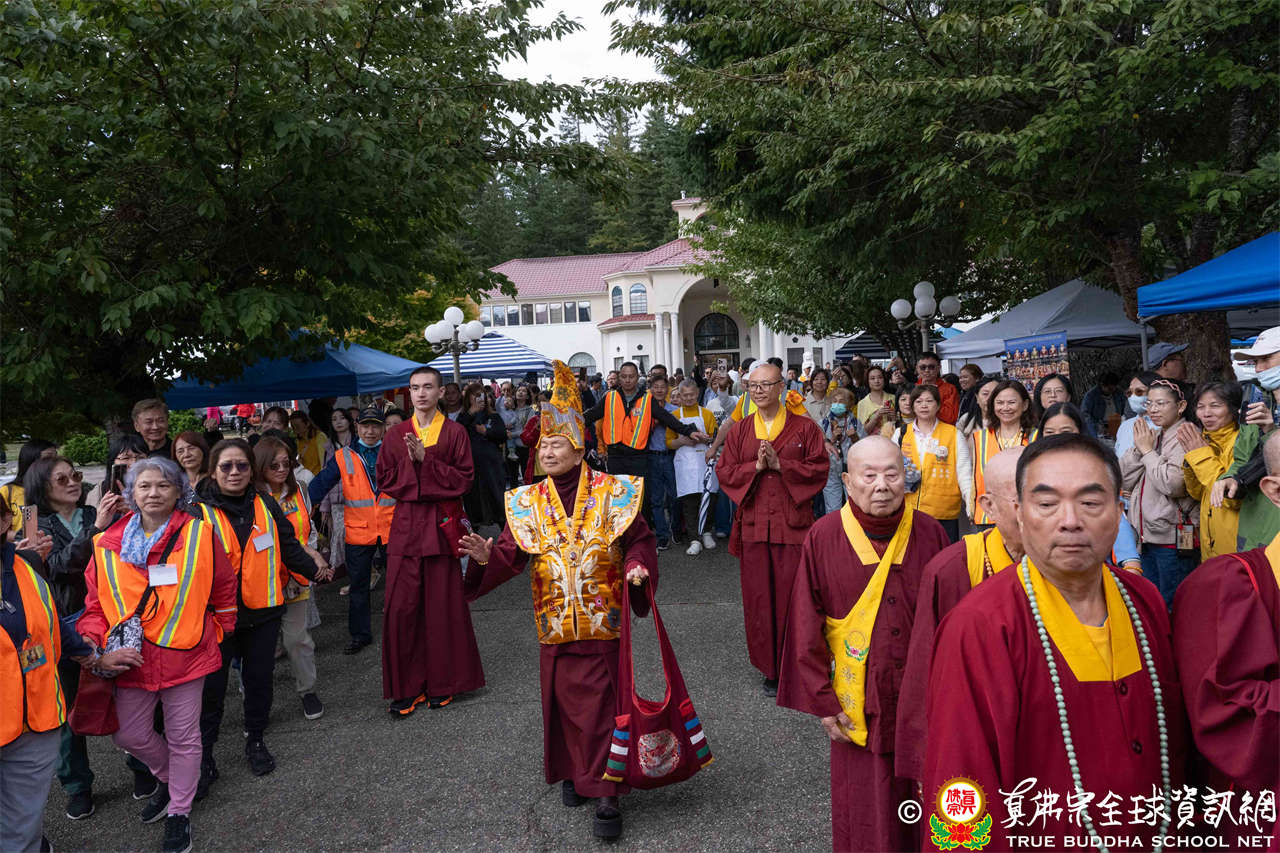 法王結束精彩開示後慈悲賜授現場與會大眾「藥王度母法」灌頂,法會在眾弟子恭敬祈禱與無量法喜中圓滿落幕。