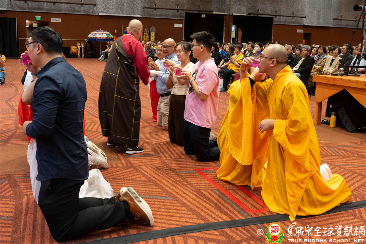 法會上,聖尊賜授10人出家戒,聖尊開示並詢問:「你們是否自願盡形壽,恪守出家戒律,永不違犯?」戒子同聲回答:「是!」這一問一答,即為得戒。