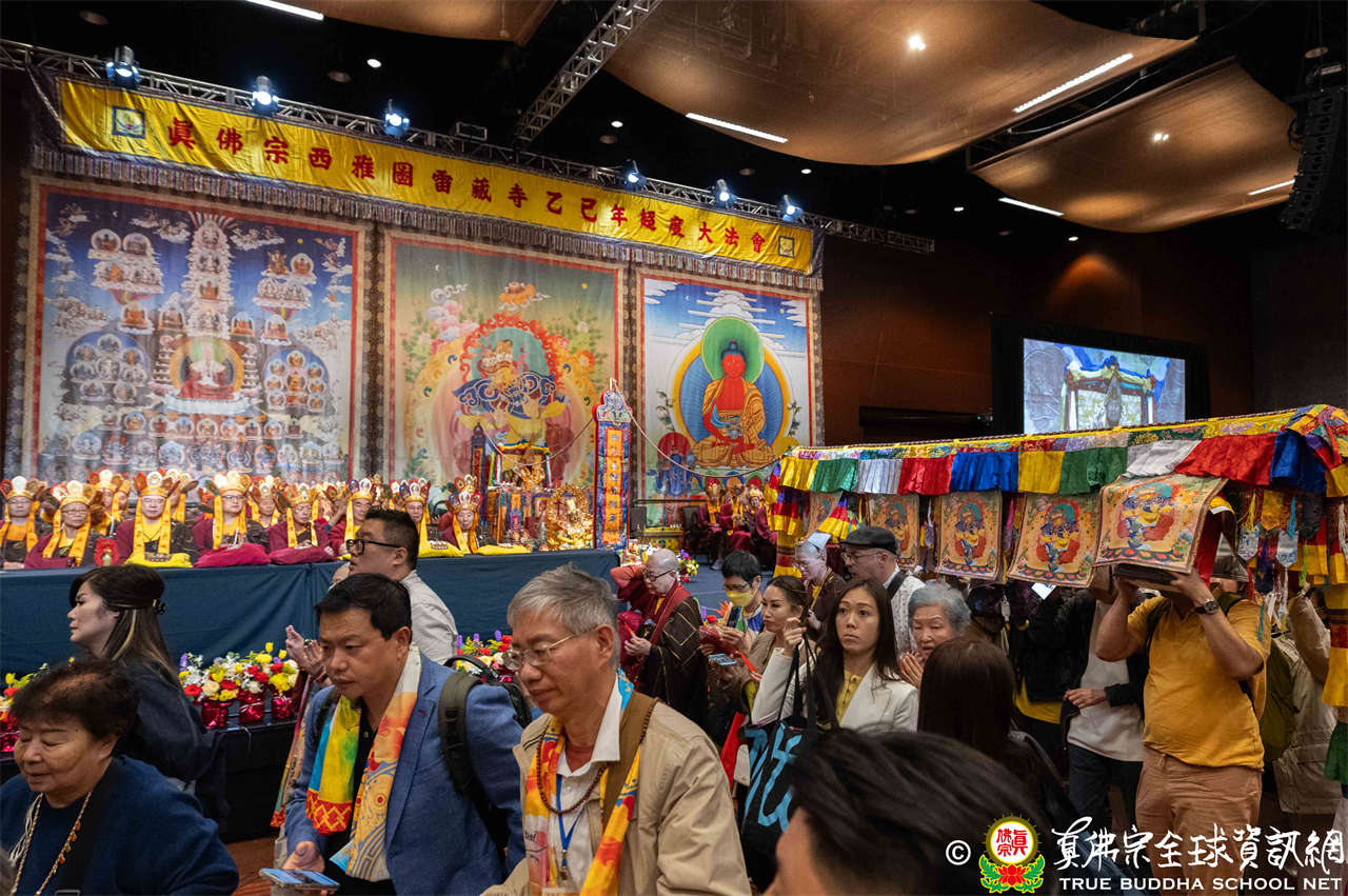 2025年9月20日,真佛宗美國西雅圖雷藏寺恭請根本傳承上師法王聖尊蓮生活佛盧勝彥主持年度秋季阿彌陀佛息災祈福超度秋季大法會,並首傳、灌頂札基拉姆念誦法。法會於Meydenbauer Center梅登堡會議中心盛大舉行,各界僑領共襄盛會,海內外嘉賓雲集,台灣朝野紛紛致贈字幅表達賀忱,總統賴清德賀詞「布教敦化」,副總統蕭美琴賀詞「樂善濟眾」。