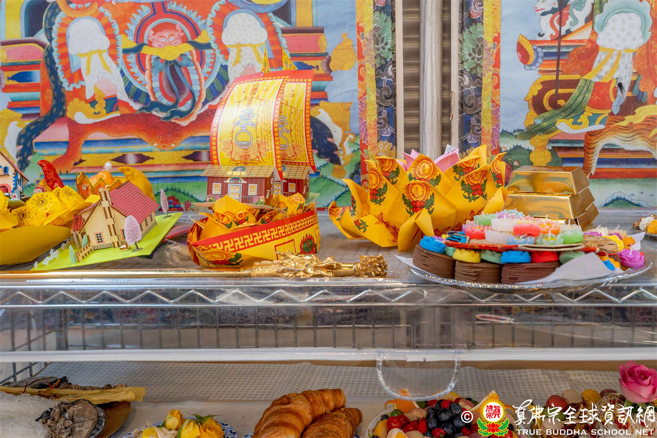 法王亦提到,家中供奉的諸多金母聖像,包括千手千眼觀音、珍寶金母、黑面金母、變身金母等,數量繁多。每日早晚,祂都向諸金母行禮致意,宛如親密家人般共處。法王笑言每天晚上都要跟祂們說晚安,早上要說早安,中午還要打招呼。