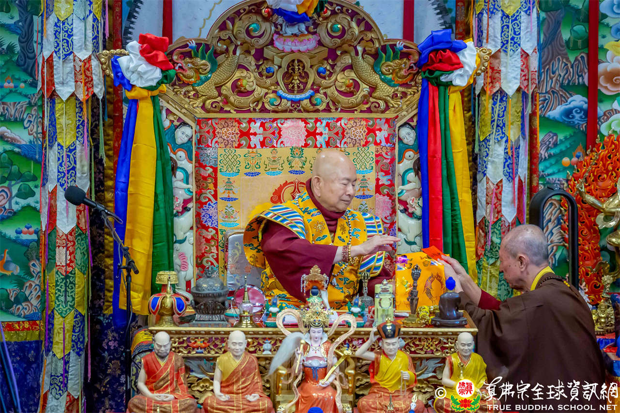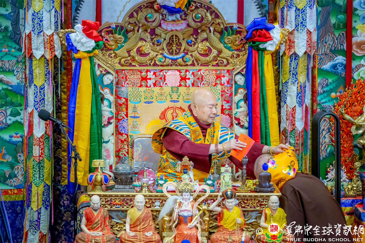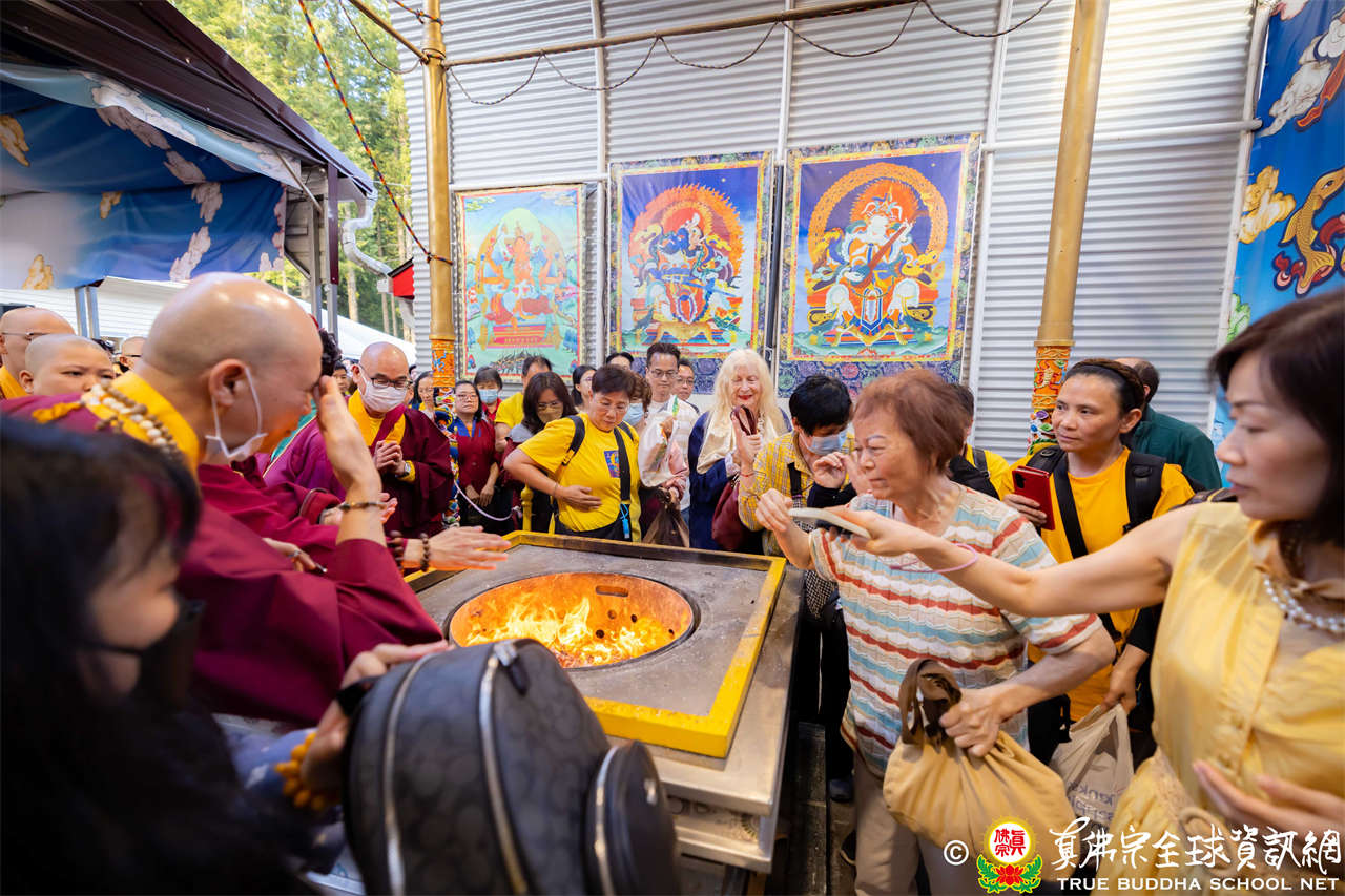 結束精彩的法語開示後,法王慈悲賜授現場與會大眾「瑤池金母法」灌頂。壇場光明加持,眾弟子身心皆得法益。至此,護摩法會圓滿殊勝,善信滿懷喜悅。