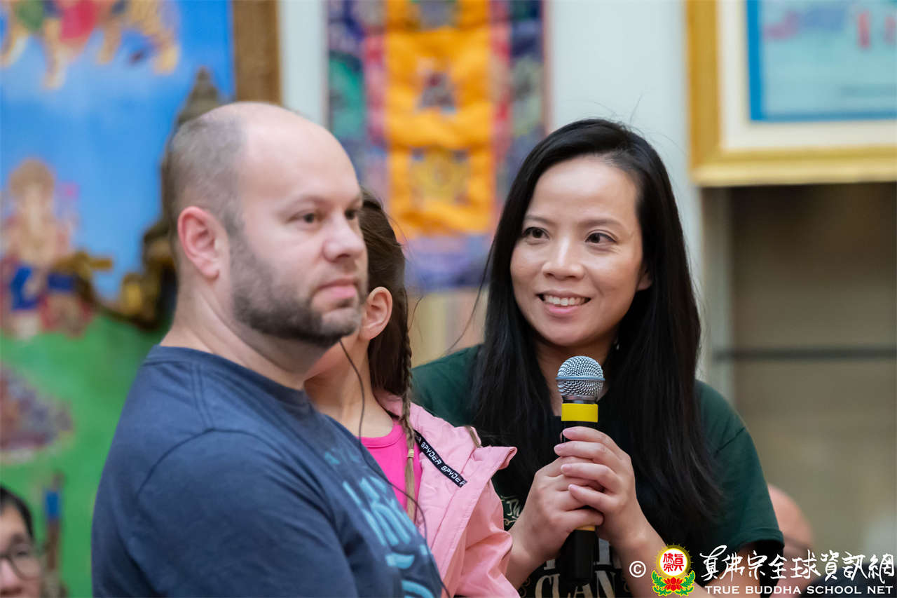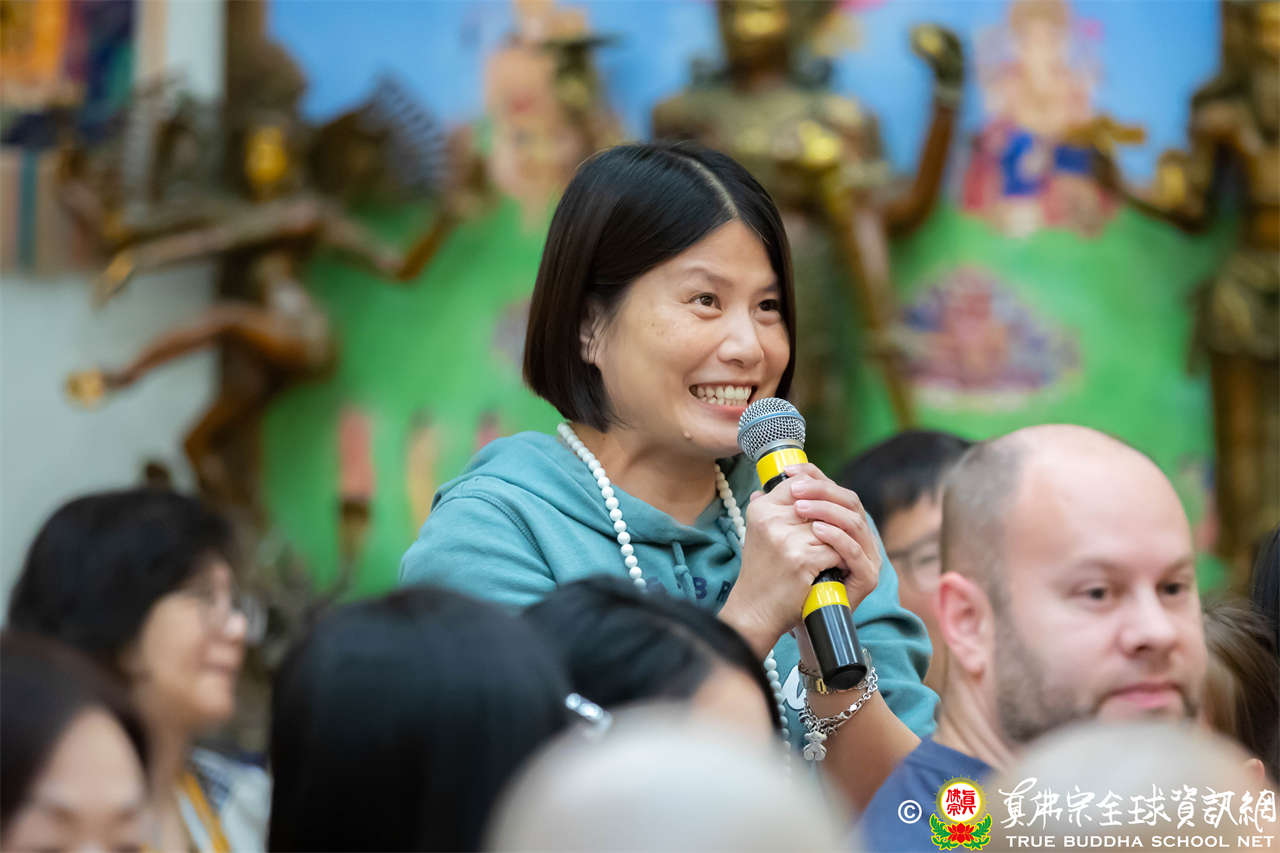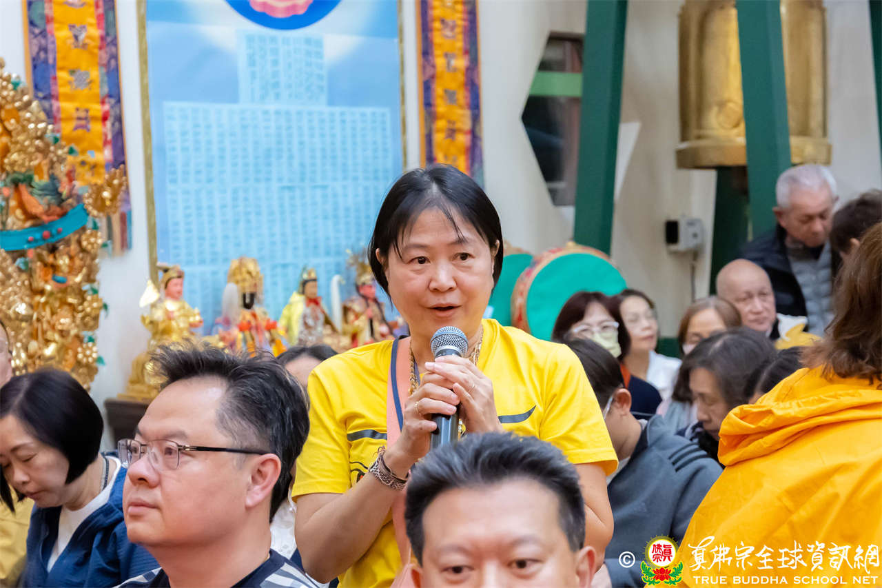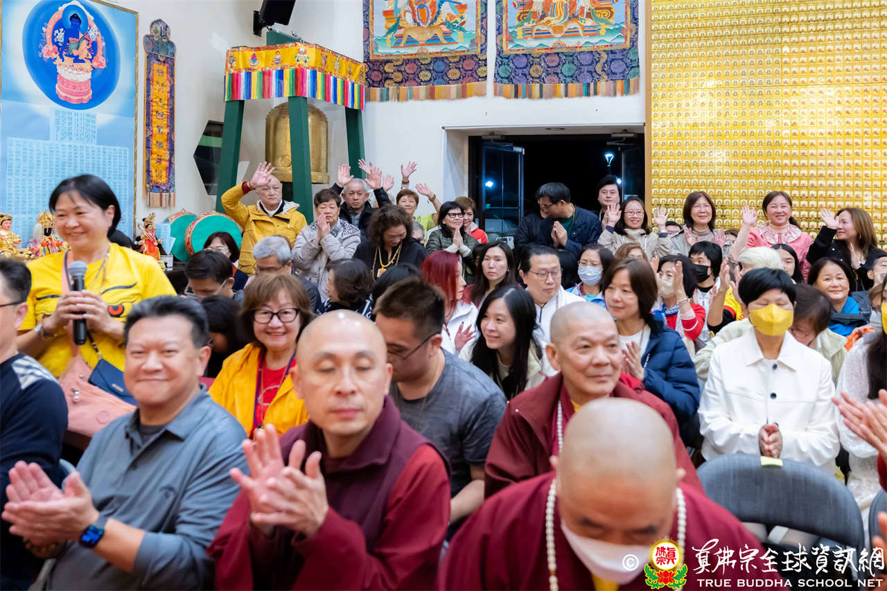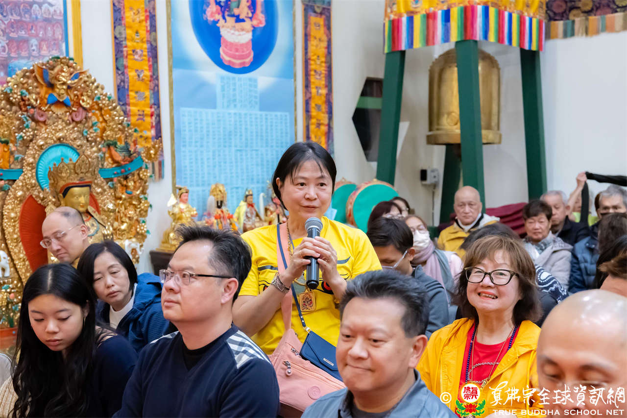 同修圓滿後,聖尊先以一則笑話帶動現場氣氛,引得大眾笑聲連連,隨即響起整齊的呼聲:「暴富!暴富!暴富!」令人驚喜的是,現場一位同門是因為札基拉姆賜福而中到頭獎,她特地來到西雅圖感恩師佛的慈悲加持。