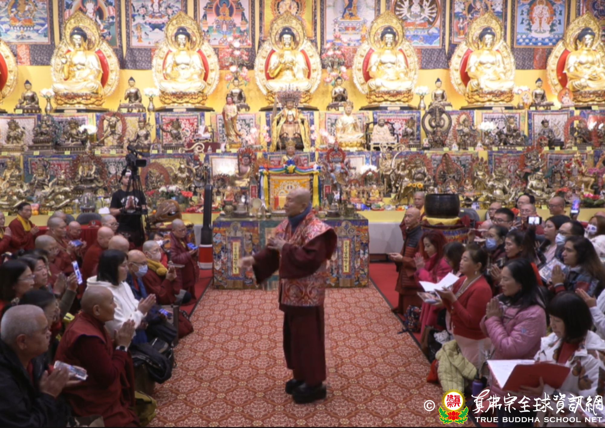 聖尊在開示中間的一小段,蓮妙上師唱了一首歌供養給根本上師以及現場的大眾。根本上師也接著清唱了一小段的歌曲,弘一大師的《送別》,令大家心生傷感。