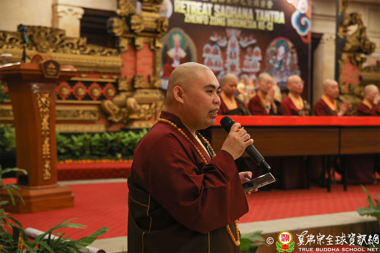 最後印尼密教總協會秘書長暨印尼真青會會長招財師兄致詞時歡喜宣佈:「今年12月,將於印尼雅加達舉辦真青會生活營,地點在印尼雷藏寺,歡迎全國青年共同參與!」並介紹授課師資有蓮飛上師、蓮祖上師、蓮妗上師、新加坡蓮茹上師等。