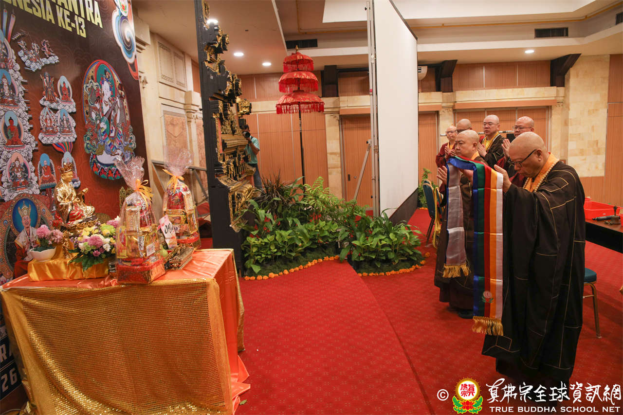 為期四天的第13屆印尼全國密營,迎來重要盛典—供僧大會。會場佈置莊嚴,氣氛溫馨祥和。