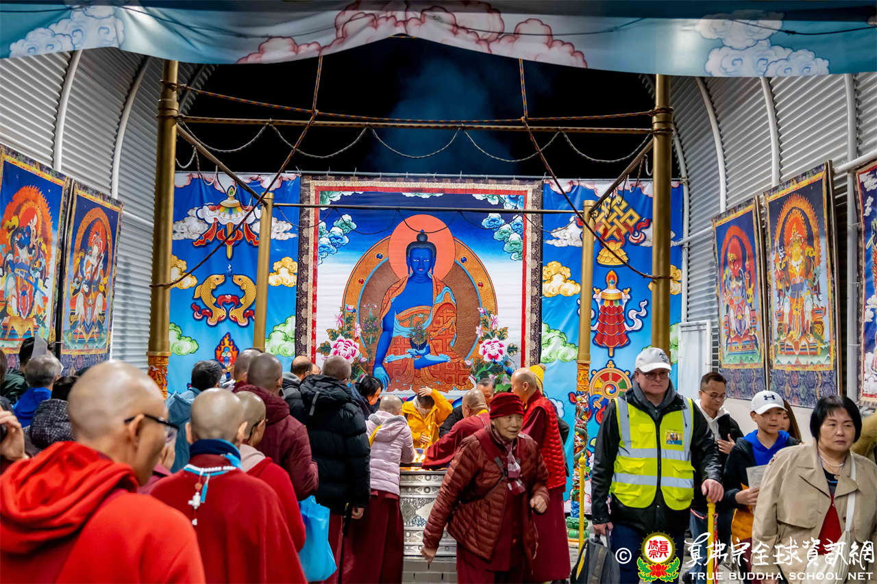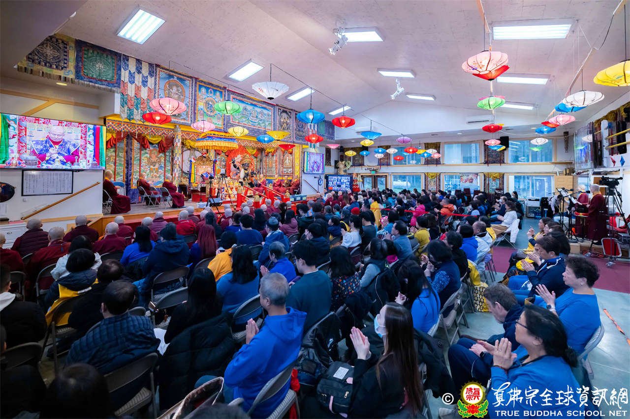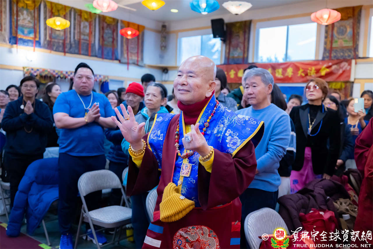 法王開示畢,衆人報以熱烈掌聲感謝法王。接著法王下座與線上弟子互相問候,並為與會大衆賜授藥師佛法灌頂。法會至此圓滿結束。