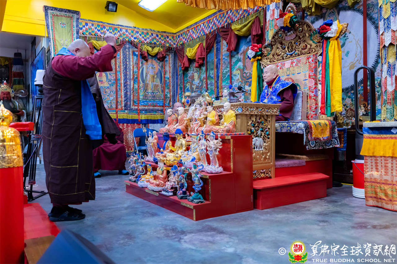 法王在開示中詳細列舉了個人修法空間的供奉次第,顯示不動明王在「問事」、「居家」與「修法」中的核心護法地位: