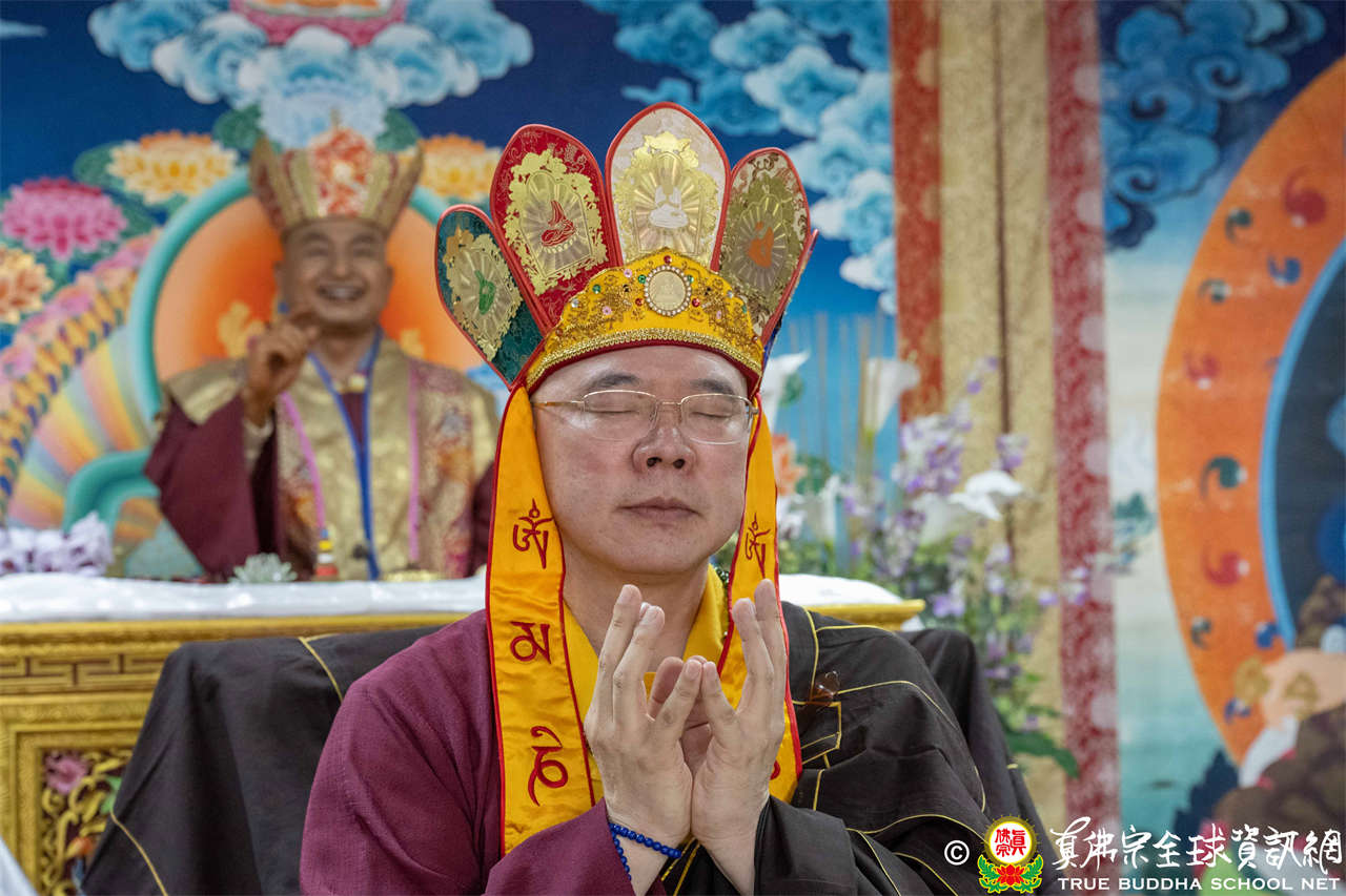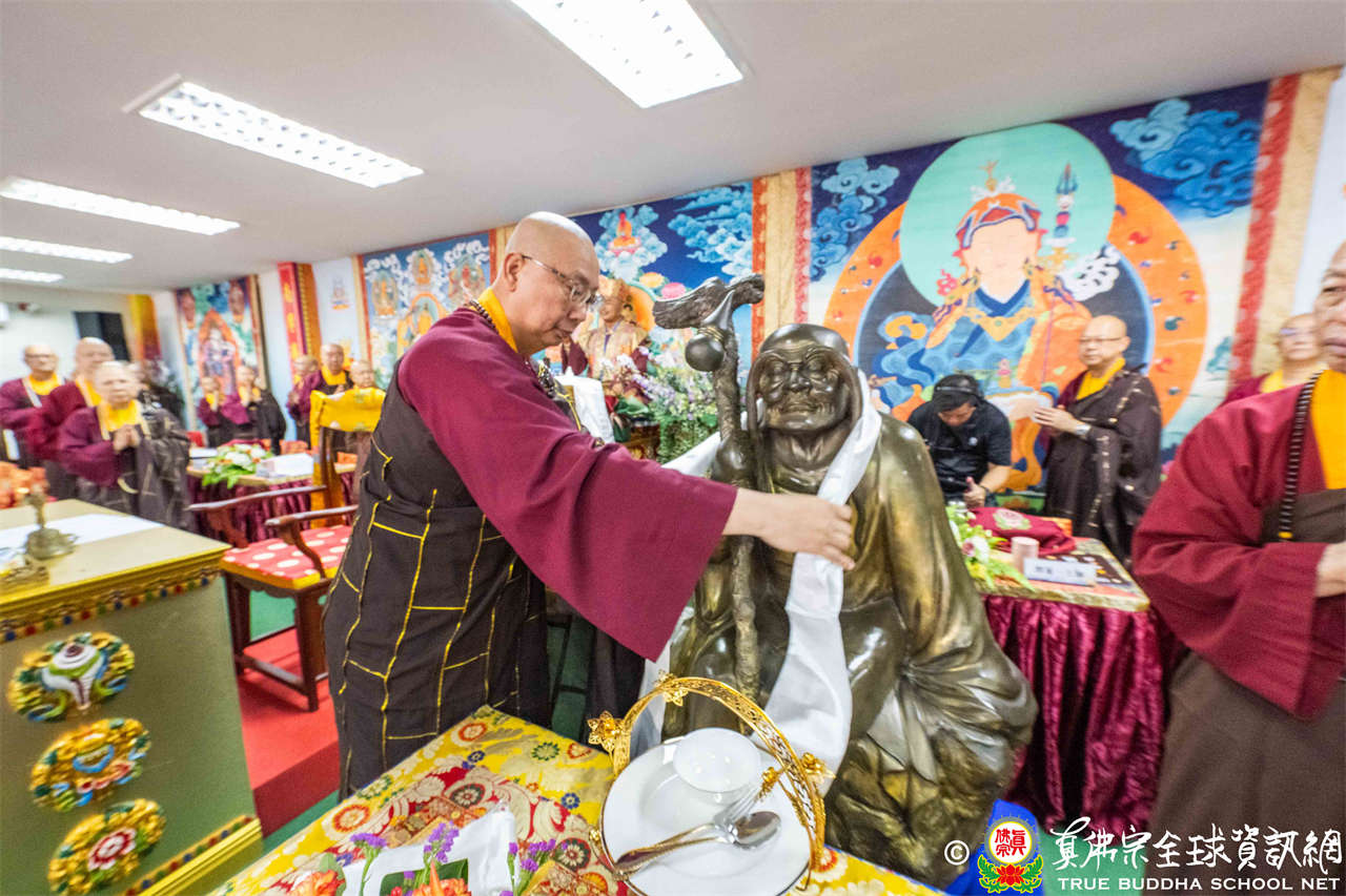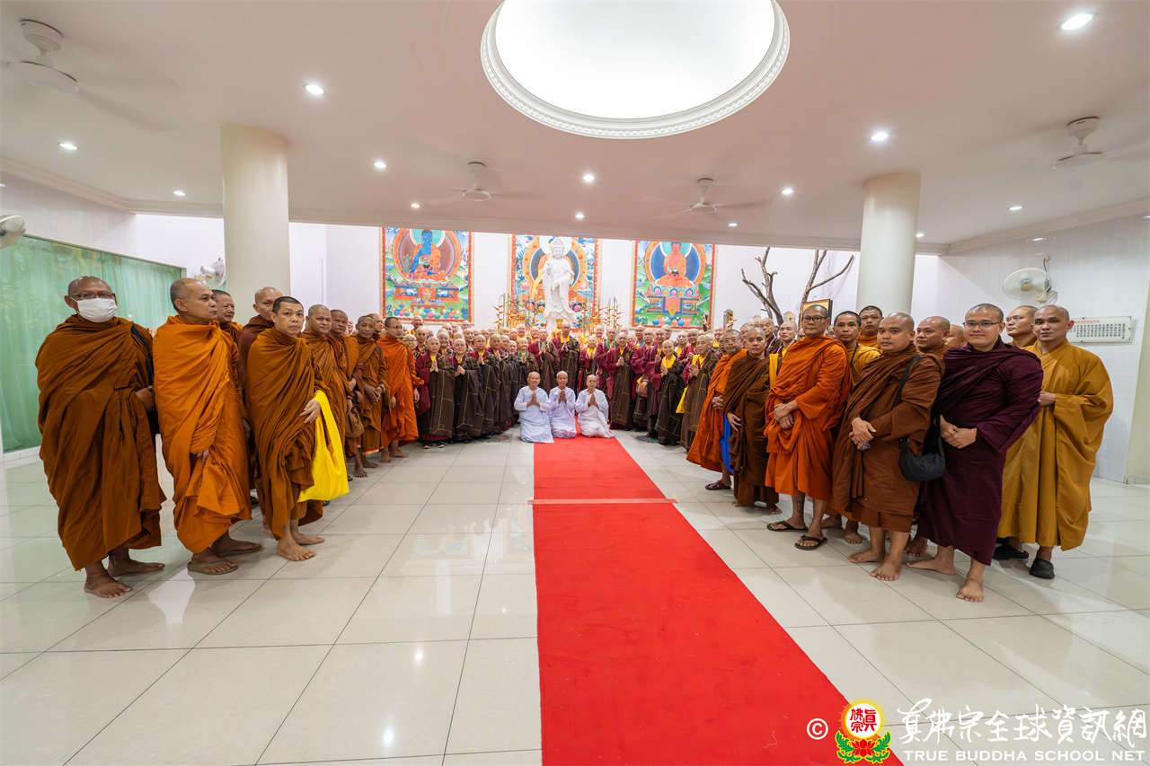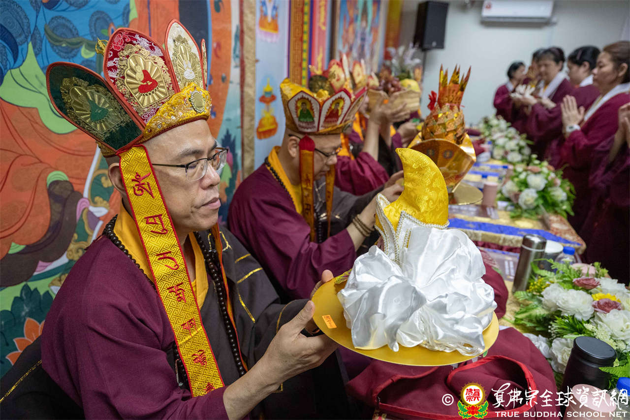 供僧大會依循《真佛宗供僧儀軌》肅穆進行,由長老釋蓮栽上師代表根本上師聖尊蓮生活佛盧勝彥納受信眾供養,並代表供養住世羅漢賓頭盧尊者。全體真佛弟子齊聲念誦《請佛住世祈願文》,祈請根本上師常住世間、永轉法輪;現場亦有南傳僧人持誦巴利文《祈禱文》,北傳僧人念誦《大悲咒》及《心經》。隨後,眾同門善信向僧眾敬獻哈達與供養,並由釋蓮栽長老開示佛法,供僧大會圓滿。