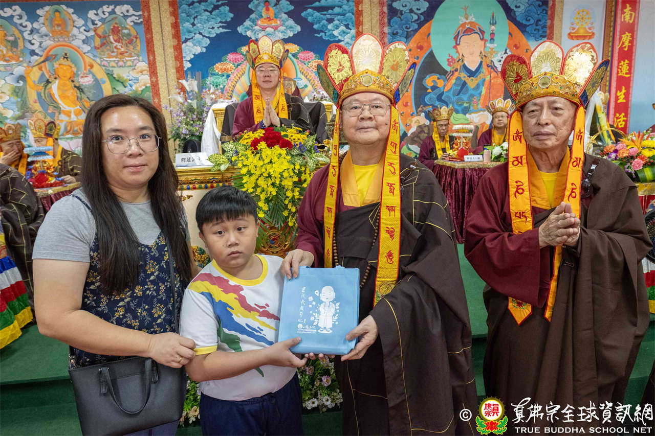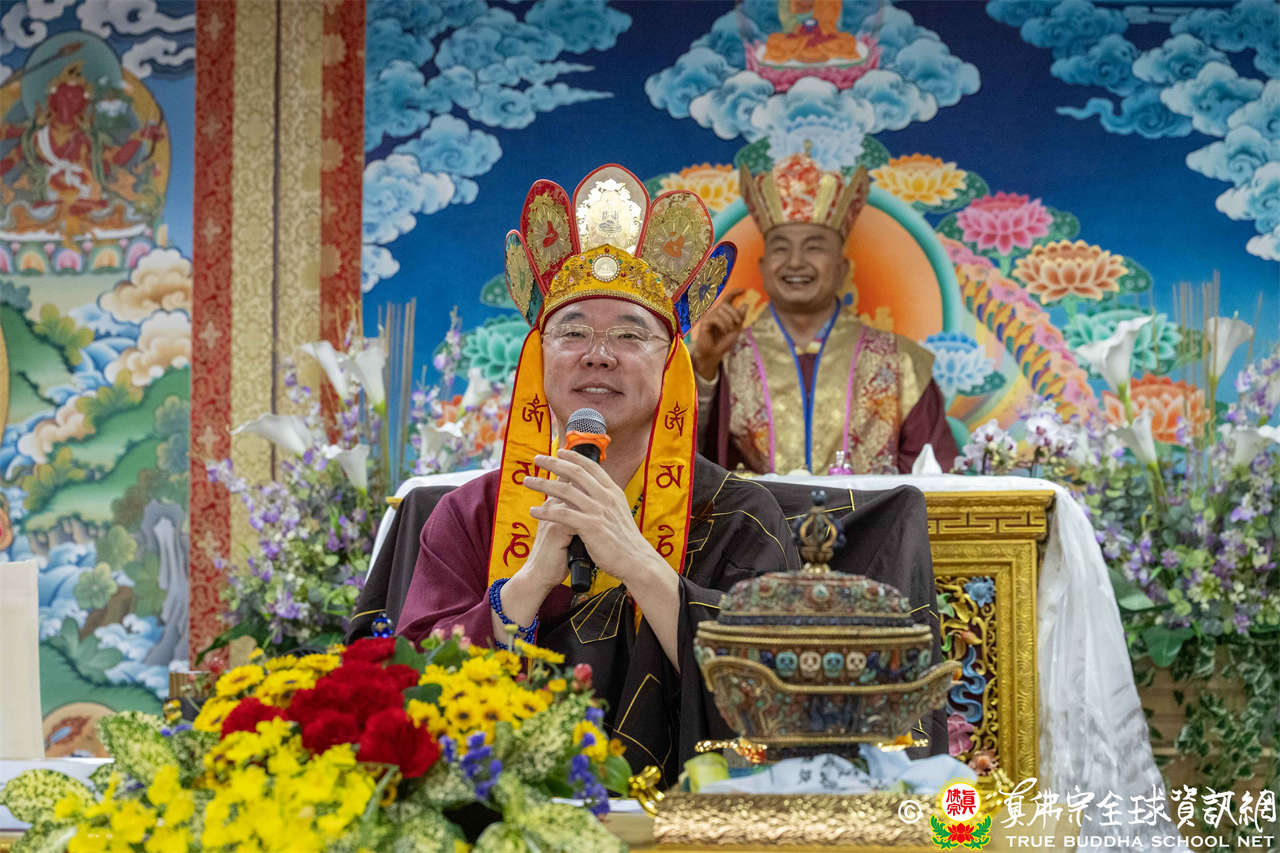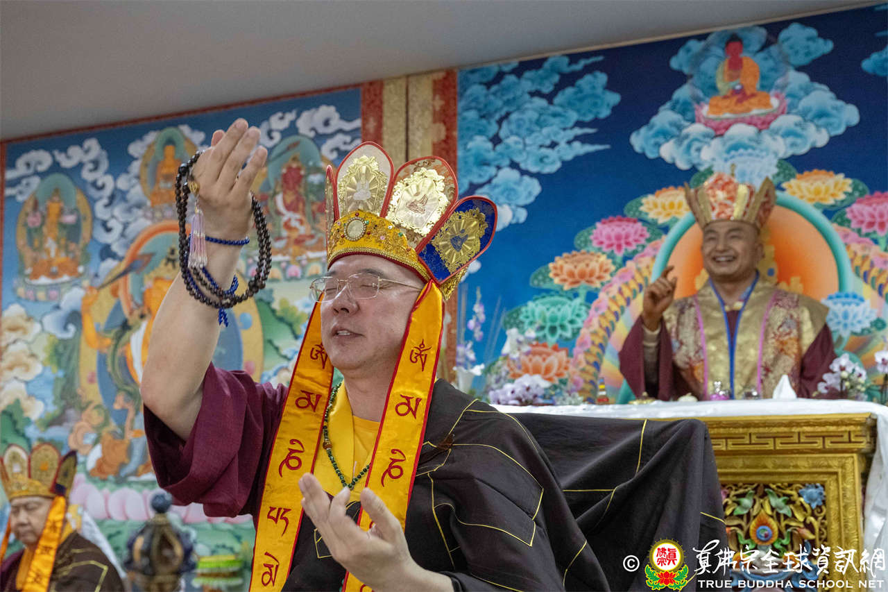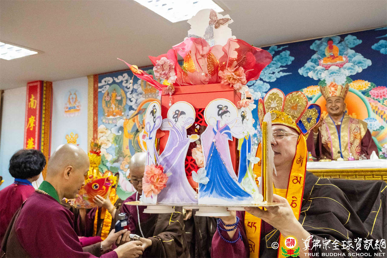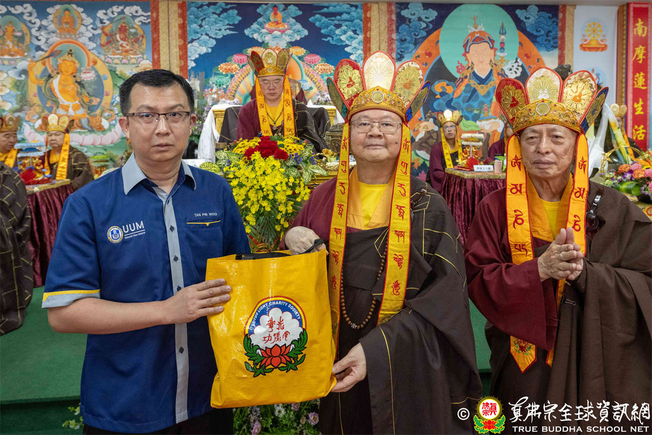 供僧大會依循《真佛宗供僧儀軌》肅穆進行,由長老釋蓮栽上師代表根本上師聖尊蓮生活佛盧勝彥納受信眾供養,並代表供養住世羅漢賓頭盧尊者。全體真佛弟子齊聲念誦《請佛住世祈願文》,祈請根本上師常住世間、永轉法輪;現場亦有南傳僧人持誦巴利文《祈禱文》,北傳僧人念誦《大悲咒》及《心經》。隨後,眾同門善信向僧眾敬獻哈達與供養,並由釋蓮栽長老開示佛法,供僧大會圓滿。