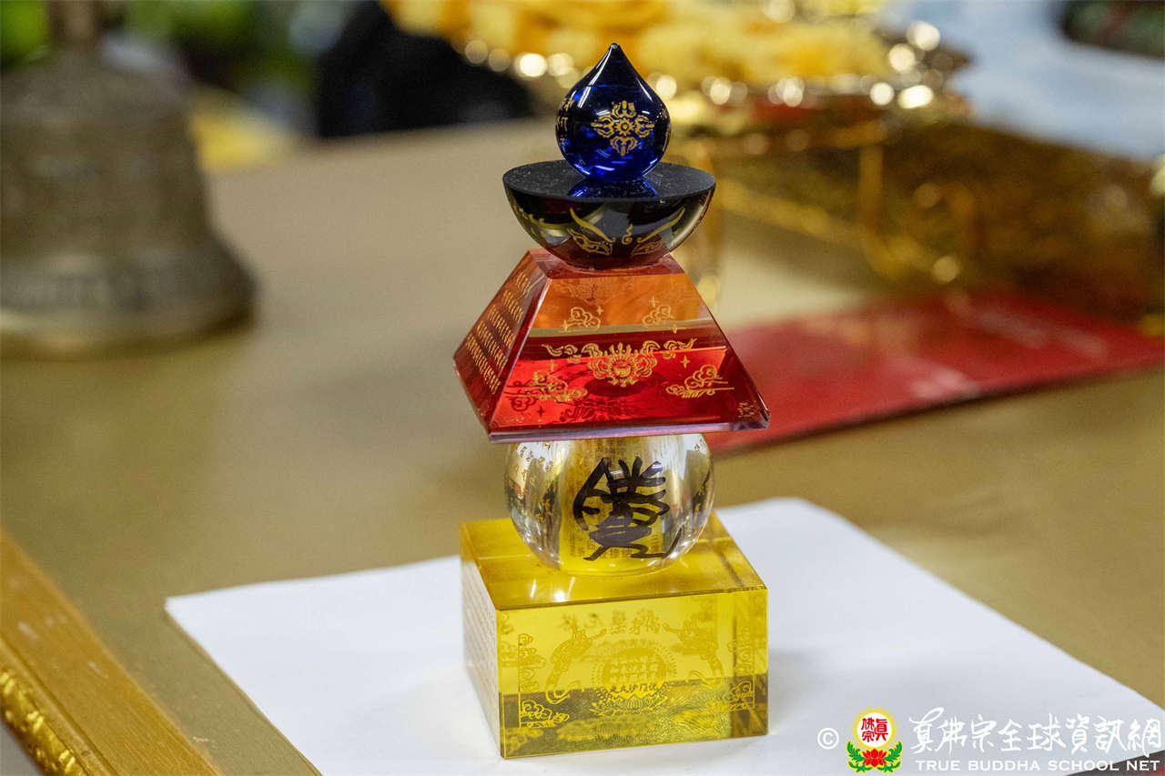 在本次法會中,釋蓮訶上師亦向大眾介紹了殊勝的賜福法寶——根本上師親自簽名加持的五輪塔。五輪象徵宇宙五大(地、水、火、風、空),亦對應佛陀五智(大圓鏡智、平等性智、妙觀察智、成所作智、法界體性智)。塔中供奉《一切如來心祕密全身舍利寶篋印陀羅尼》,象徵諸佛之身與諸佛之心。上師說明:「禮拜五輪塔,即是禮拜佛身;供養此塔,即是供養一切諸佛。」