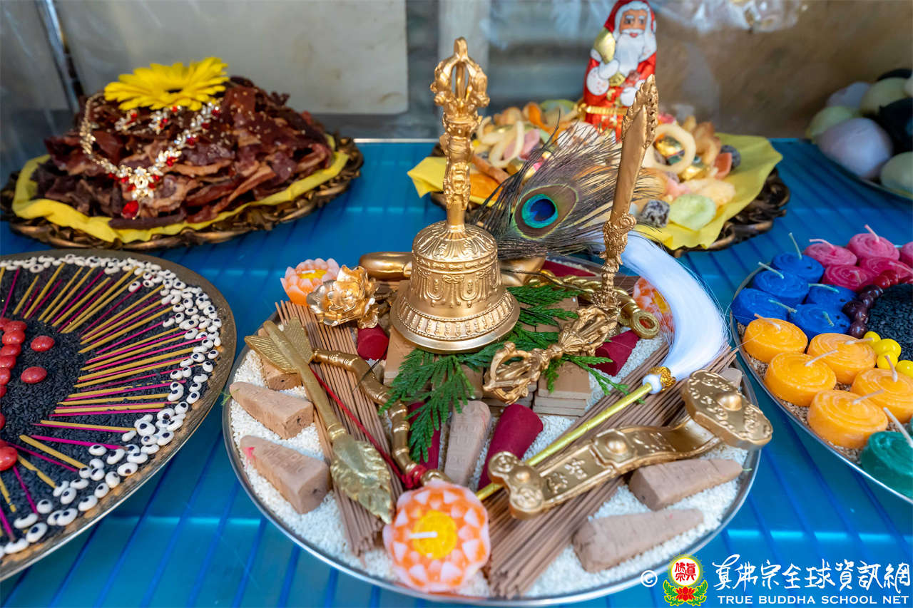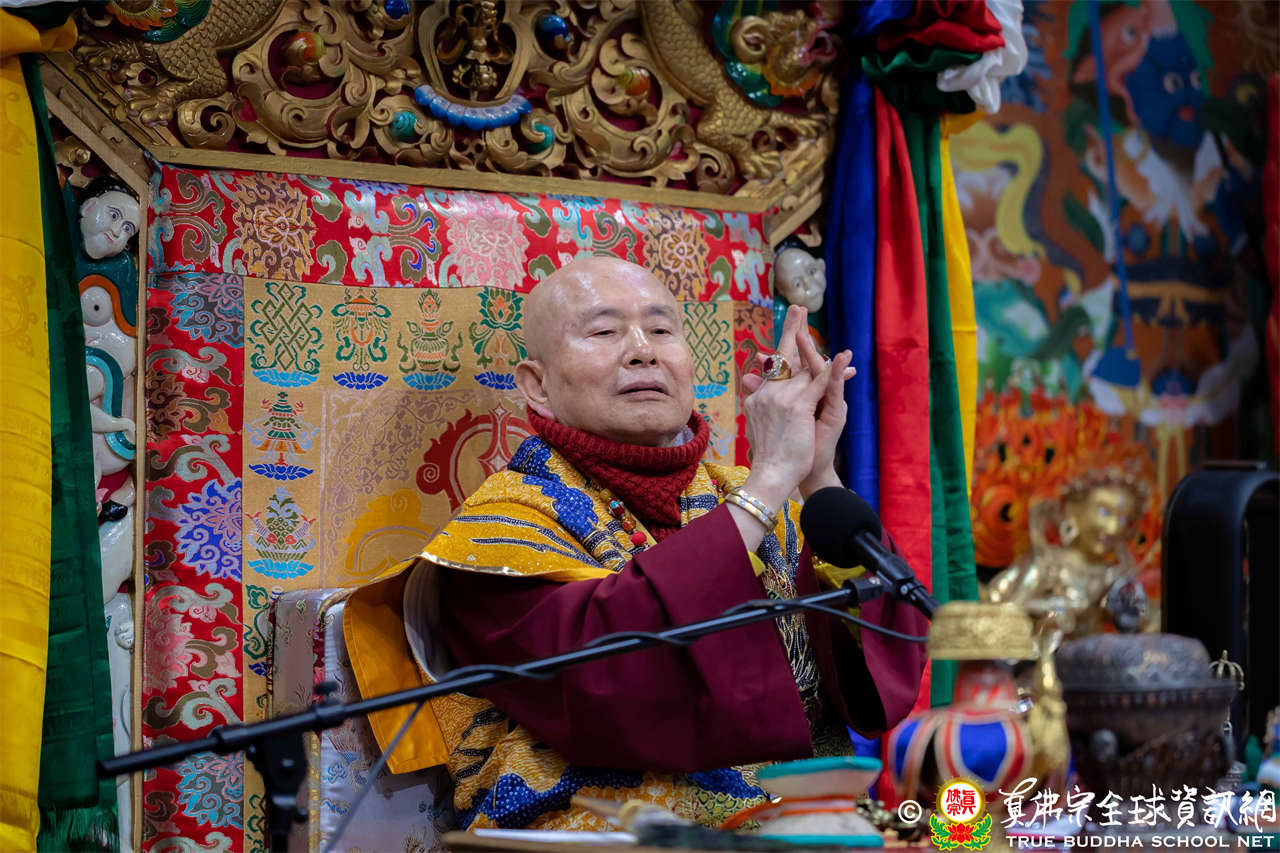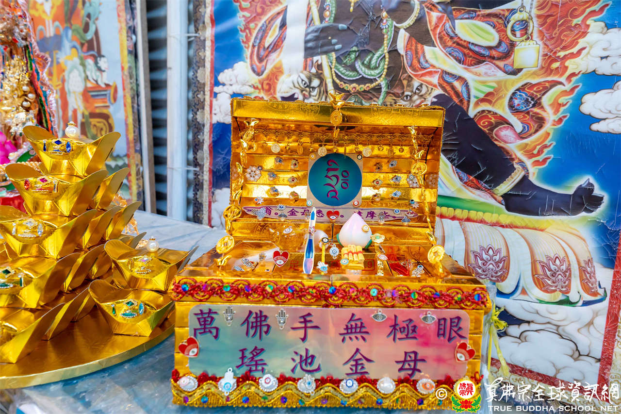接著,法王分享了是日主尊——萬佛手無極眼瑤池金母大天尊在法會前夕的特別開示。法王曾請示金母對供品的特別要求,金母僅簡潔答覆:「你不要用骯髒的杯子裝水來供養我。」