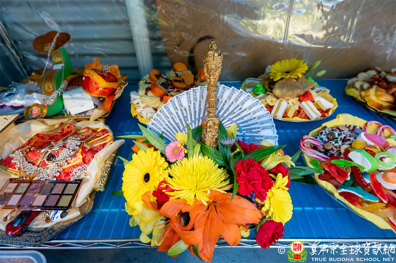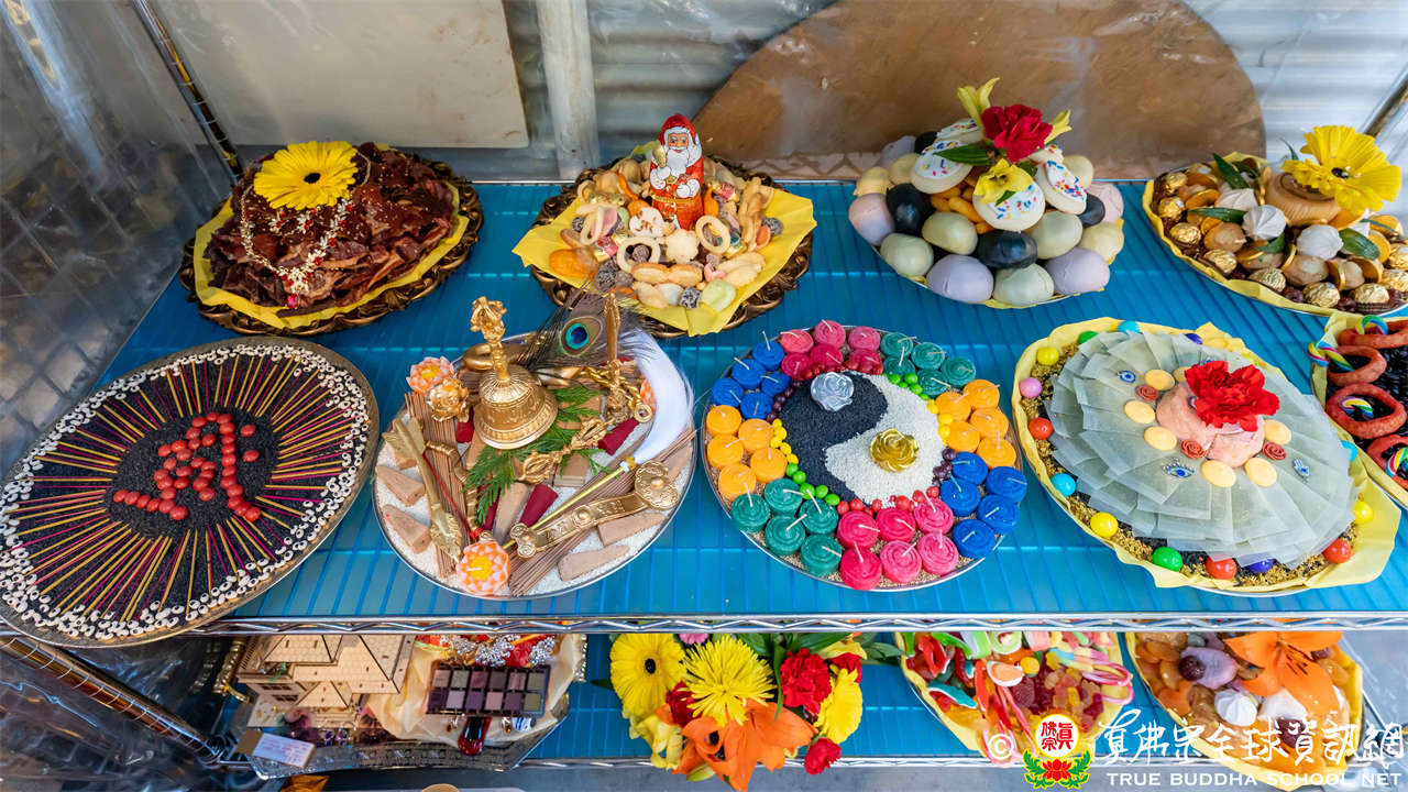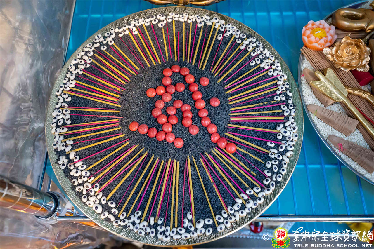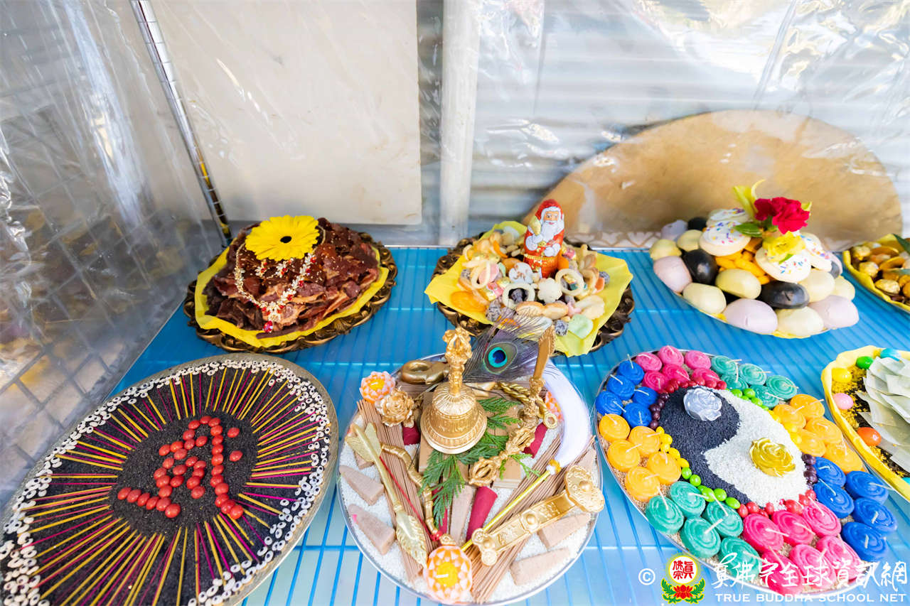 接著,法王分享了是日主尊——萬佛手無極眼瑤池金母大天尊在法會前夕的特別開示。法王曾請示金母對供品的特別要求,金母僅簡潔答覆:「你不要用骯髒的杯子裝水來供養我。」