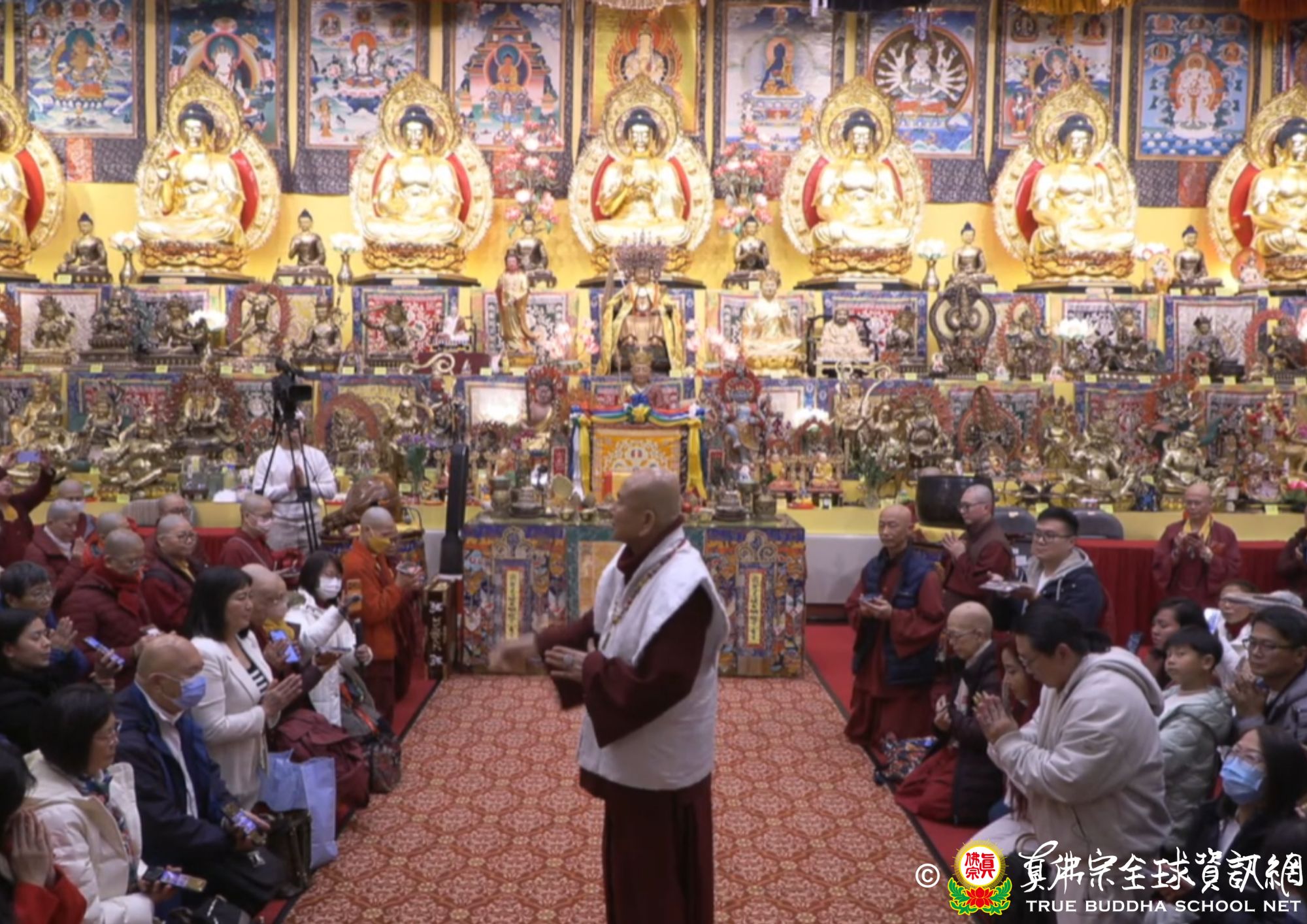 反看自己的身體,就像是宇宙中很小的灰塵,如大海中的水泡,好像存在又好像不存在。出生於死亡充滿了無常。如今已經完全知道了只有妙明真心是長住不滅,大眾現場一起禮拜釋迦牟尼佛,並唱偈讚歎釋迦牟尼佛。
