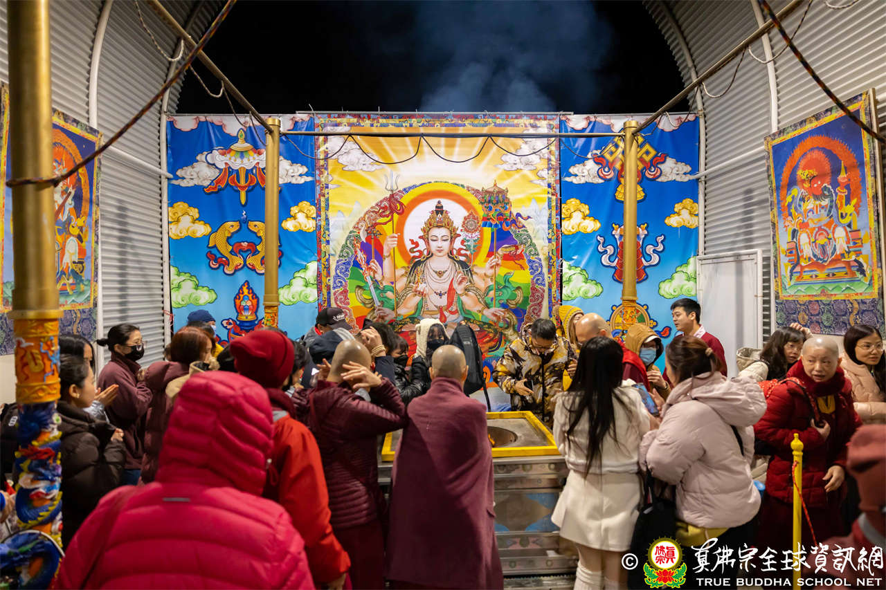 2025年12月7日,西雅圖彩虹雷藏寺恭請聖尊蓮生法王主壇大隨求菩薩。護摩圓滿後,法王向大眾預告,下個禮拜天,12月14日(週日)下午三點(3 PM),將舉行時輪金剛護摩法會。