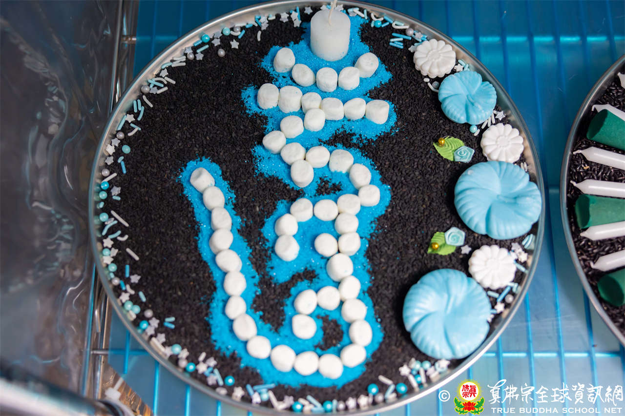 在示範短咒「嗡。別炸。薩埵。阿。吽呸」時,法王幽默地提醒,「吽呸」二字要發重音,千萬不可唸成「烘焙」,否則就變成在做披薩、餅乾或麵包了,引起全場會心一笑。