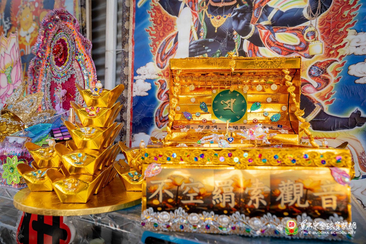 談及今日主尊不空羂索觀音,法王開示,「不空」代表所求不落空;「羂索」象徵以慈悲法索綁住一切不好之事,令災厄煩惱遠離,同時將吉祥福分牽引而來,賜予眾生。因此,不空羂索觀音具足息災、降伏、敬愛、超度等大威神力,能滿眾生所願,也因此報名人數眾多。