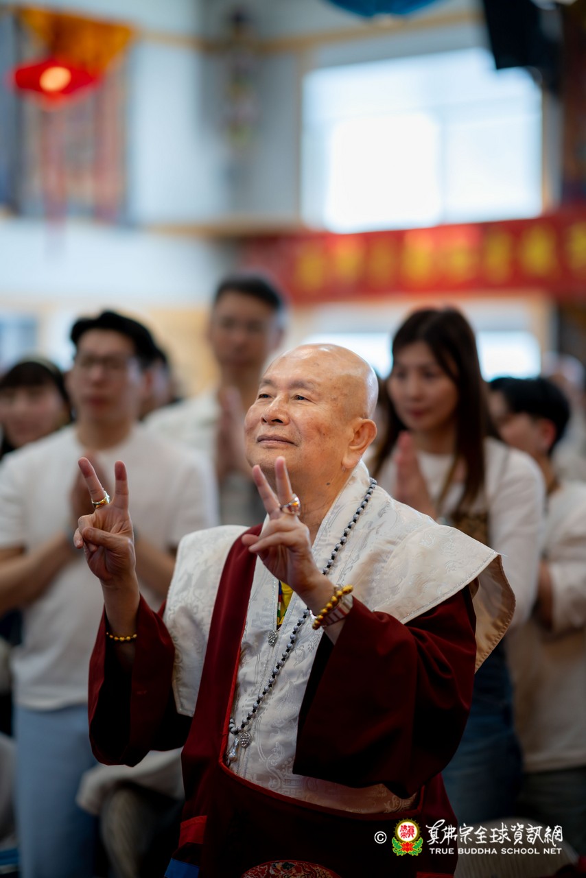 2026年4月19日,蓮生法王蒞臨彩虹雷藏寺,主壇殊勝的不空羂索觀音息災祈福超度護摩法會。適逢今日是師母陽曆生日,開示前,法王慈悲帶領大眾齊唱印尼版生日歌,現場洋溢著溫馨歡樂的氣氛,眾弟子同聲祝賀師母生日快樂。