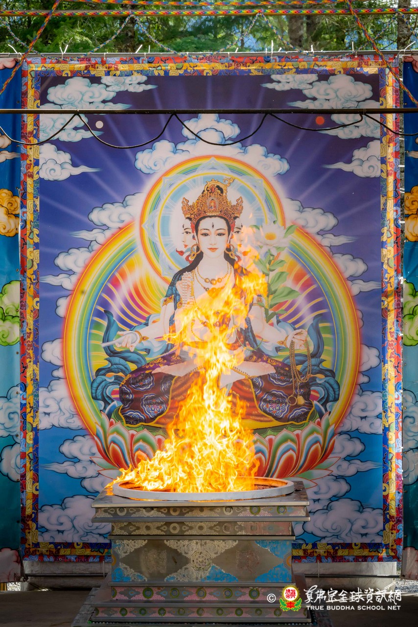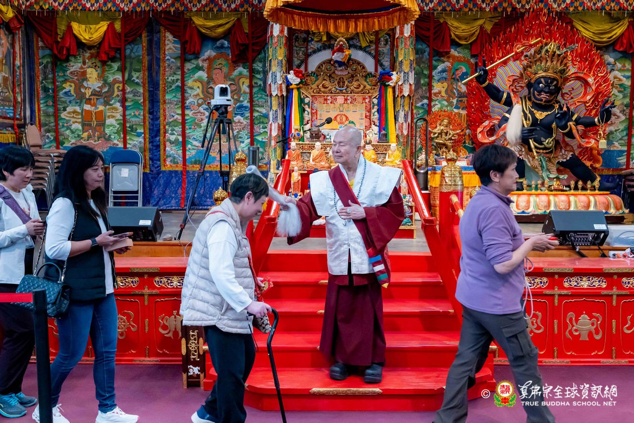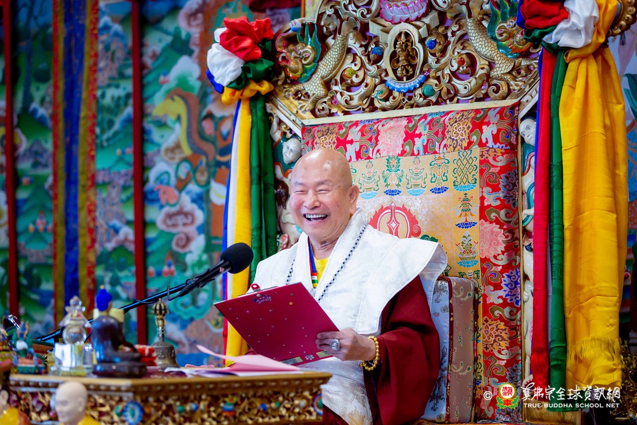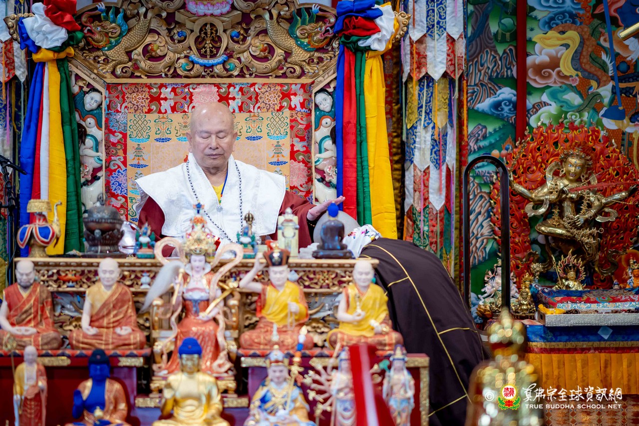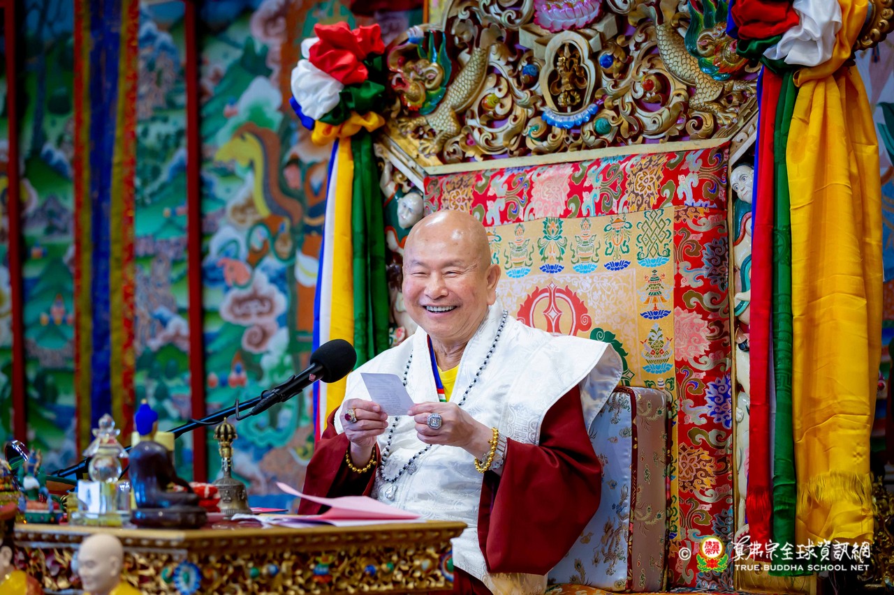 隨後,法王談及與瑤池金母深厚殊勝的因緣。法王開示,瑤池金母是自己第一位本尊,追隨至今已五十餘年。金母最是慈悲,同時也是最嚴厲的本尊,慈悲中具威德,嚴厲中含教化,時時引導弟子走向正道。