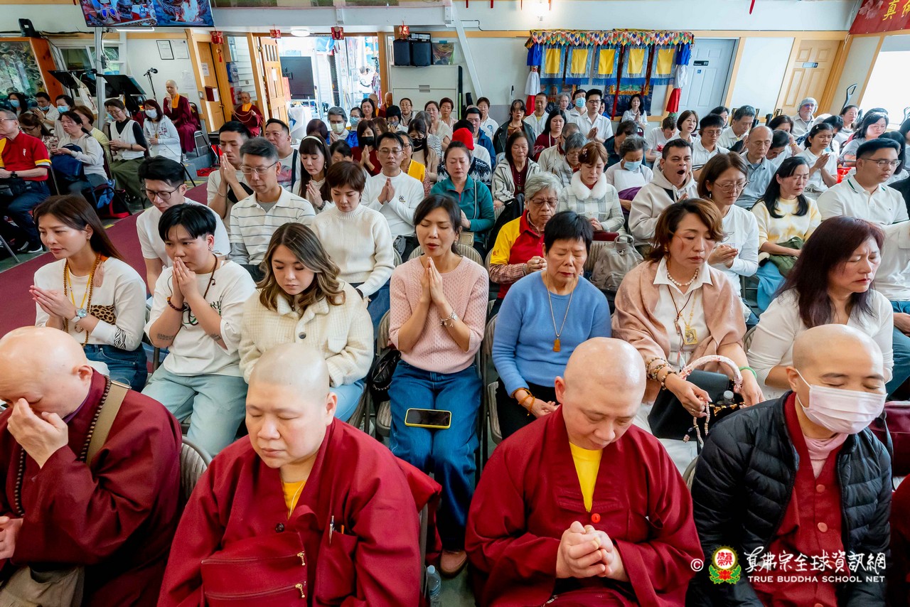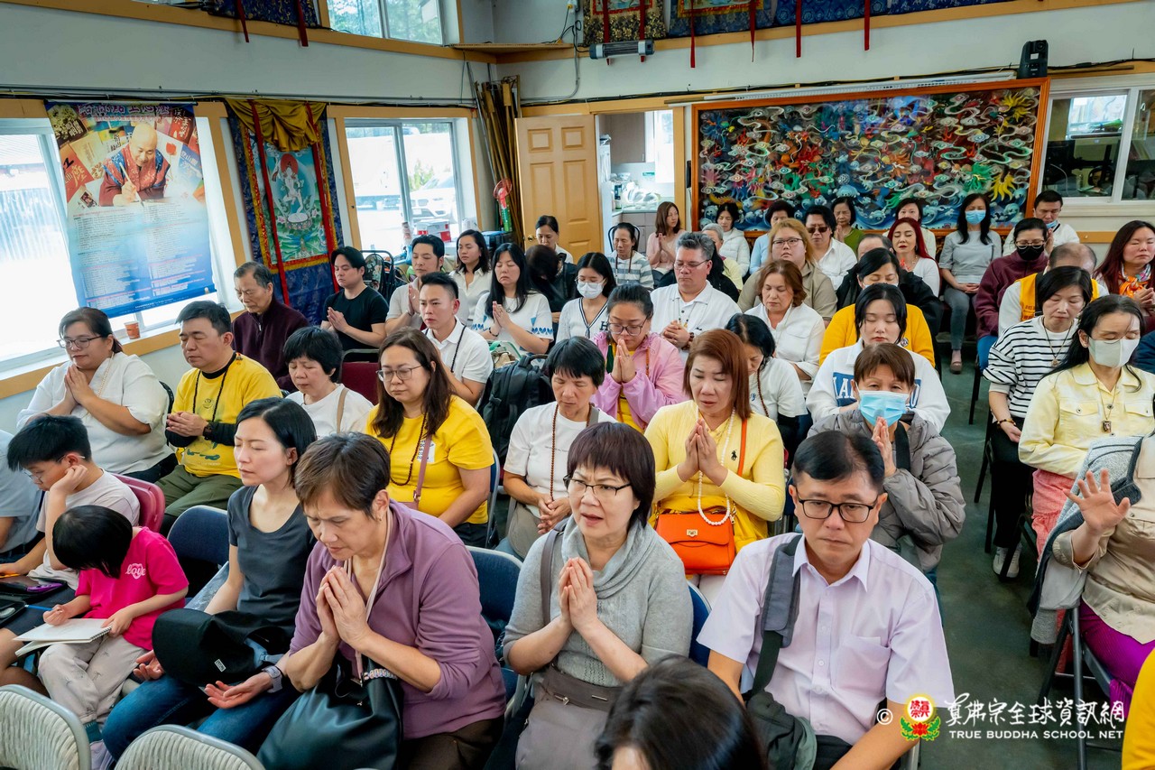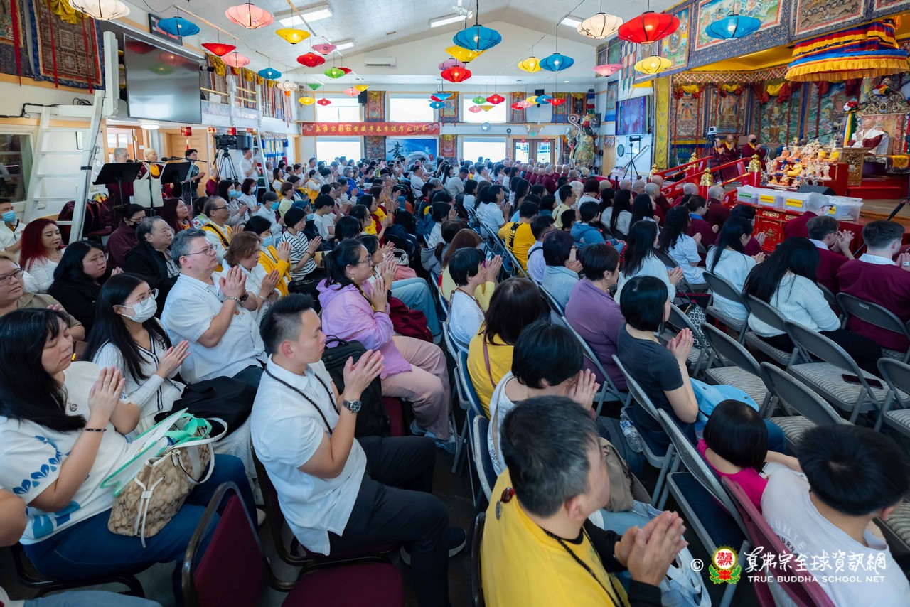 法王接著讚歎今日法會播放的不空羂索觀音咒音,並憶起前一晚西雅圖雷藏寺所播放的地藏王菩薩咒音,以及蓮花童子心咒音樂,皆出自巴西一對母女弟子之手——阿芳助教與其女兒可盈師姐所精心製作。法王表示,這些咒音極具感染力,能深深觸動人心,令聞者生起清淨與感動。