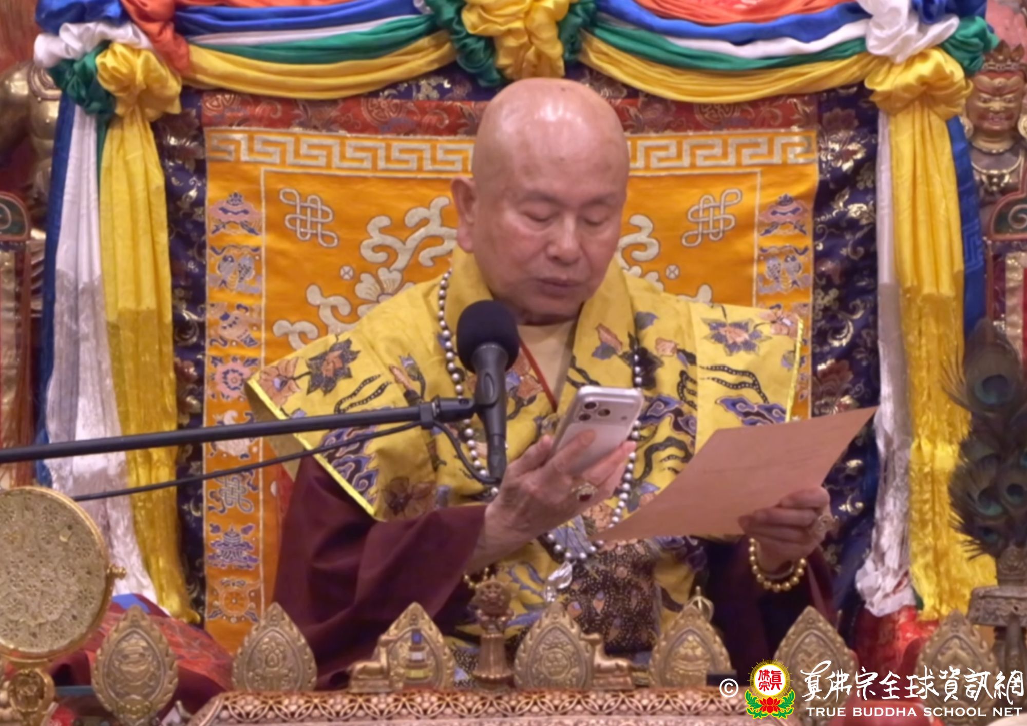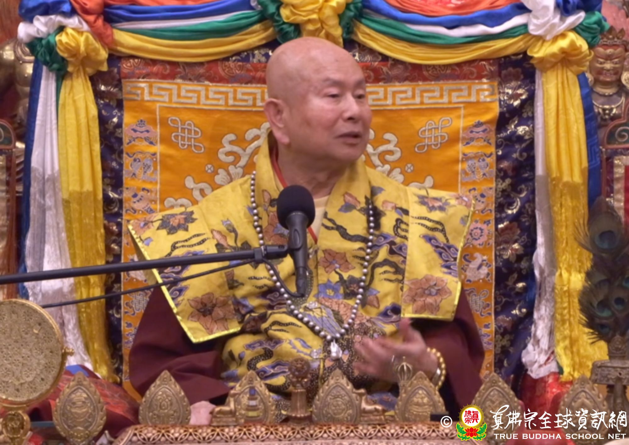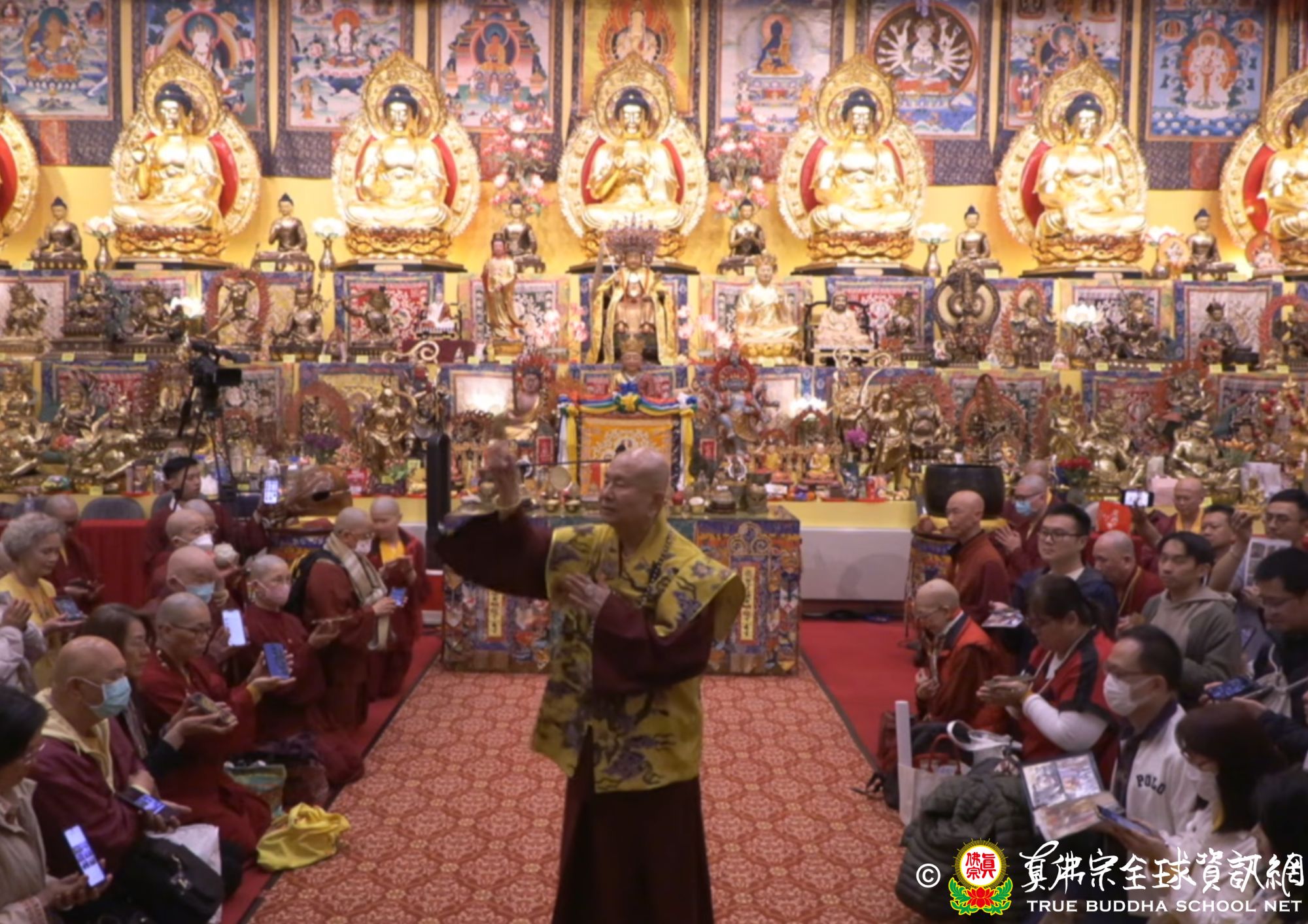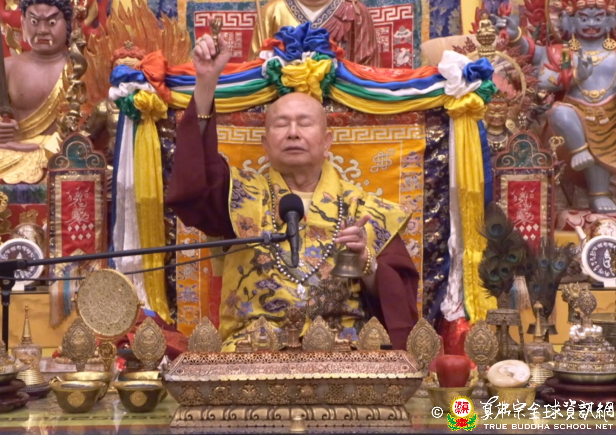 聖尊說這次的秋季法會主尊是大勢至菩薩,傳授大勢至菩薩本尊法。淨土三尊裡面分別是阿彌陀佛、觀世音菩薩和大勢至菩薩。大勢的意思就是:修這位菩薩,可以得到權利。觀世音菩薩代表的是慈悲,大勢至菩薩是喜捨,釋迦牟尼佛是能淨,阿彌陀佛是平直。平常心是道場,指的就是阿彌陀佛。