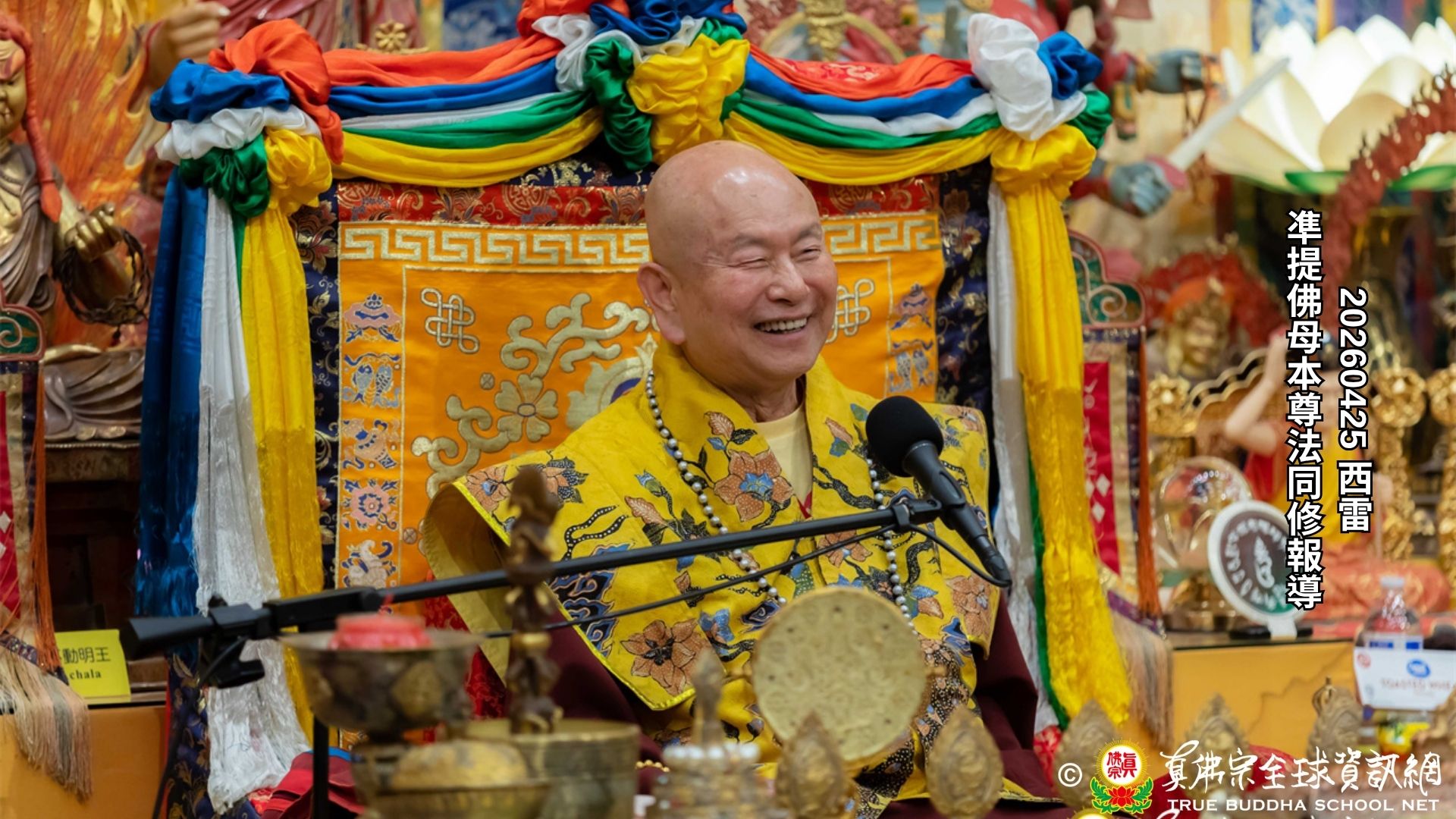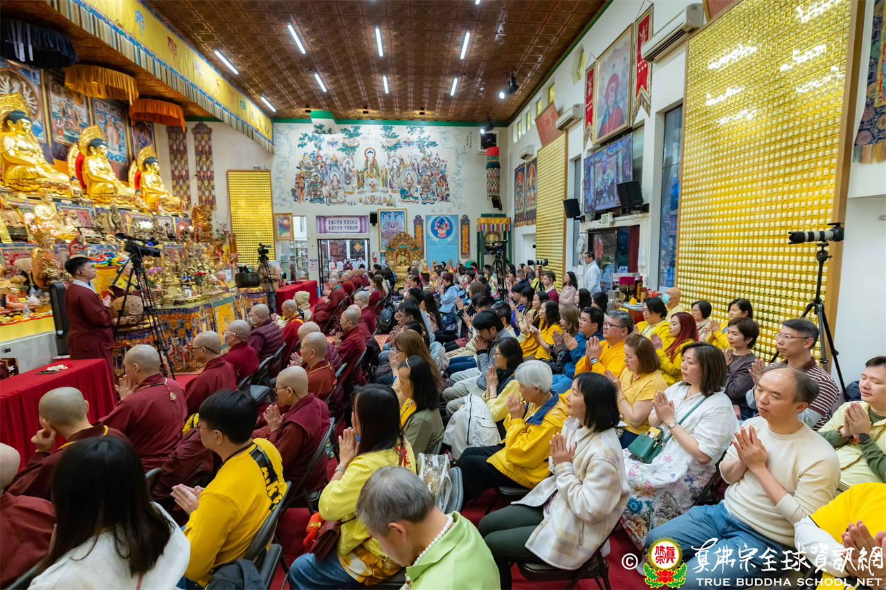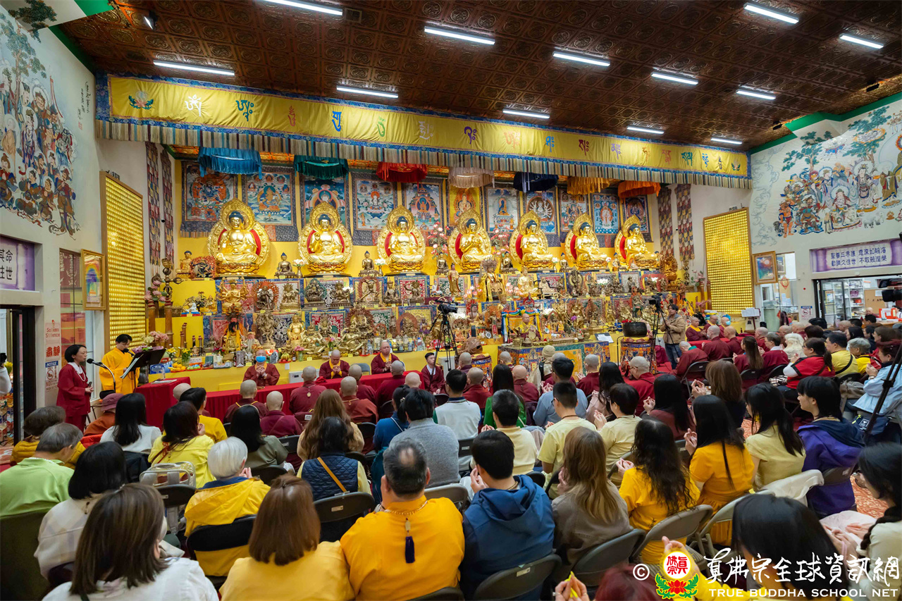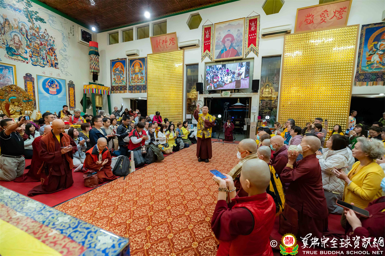2026年4月25日週六晚上8時,美國西雅圖雷藏寺大雄寶殿裡,聖尊蓮生活佛盧勝彥帶領來自世界各地的四衆弟子同修準提佛母本尊法並講授《大佛頂首楞嚴經》。