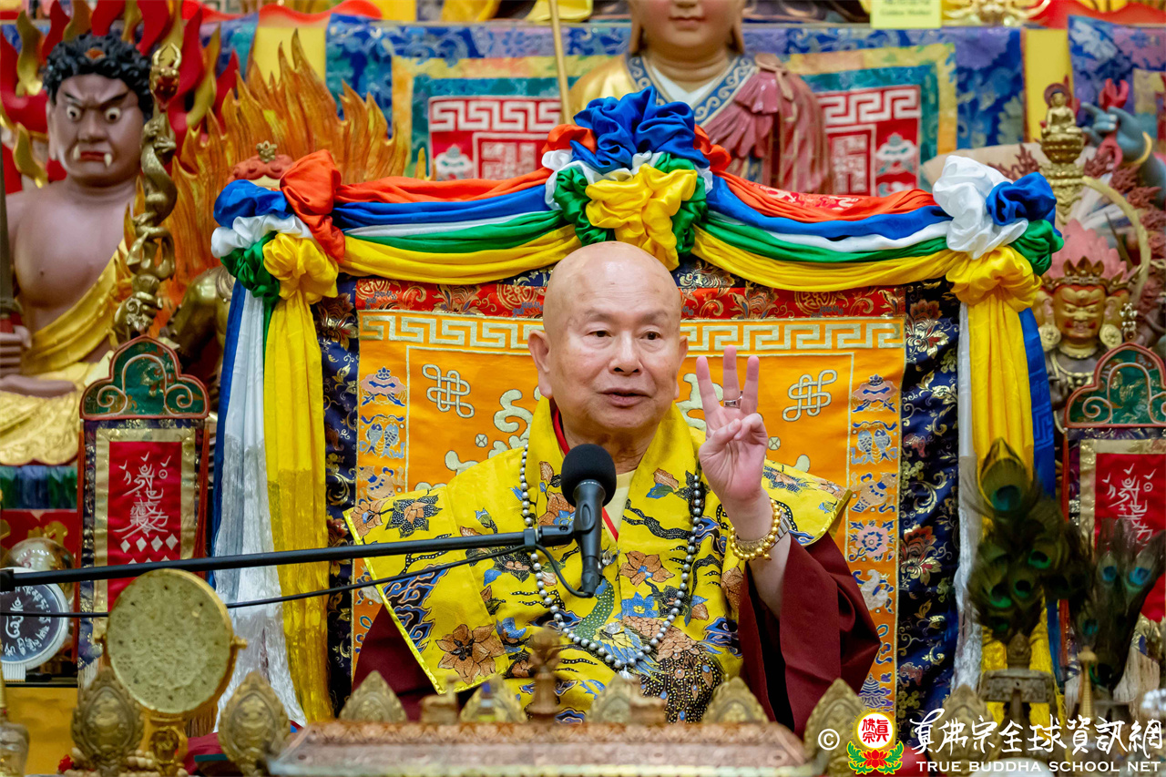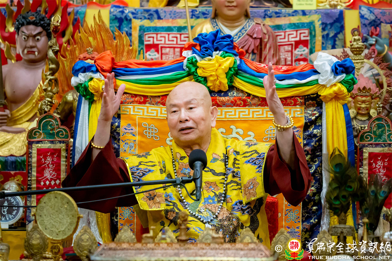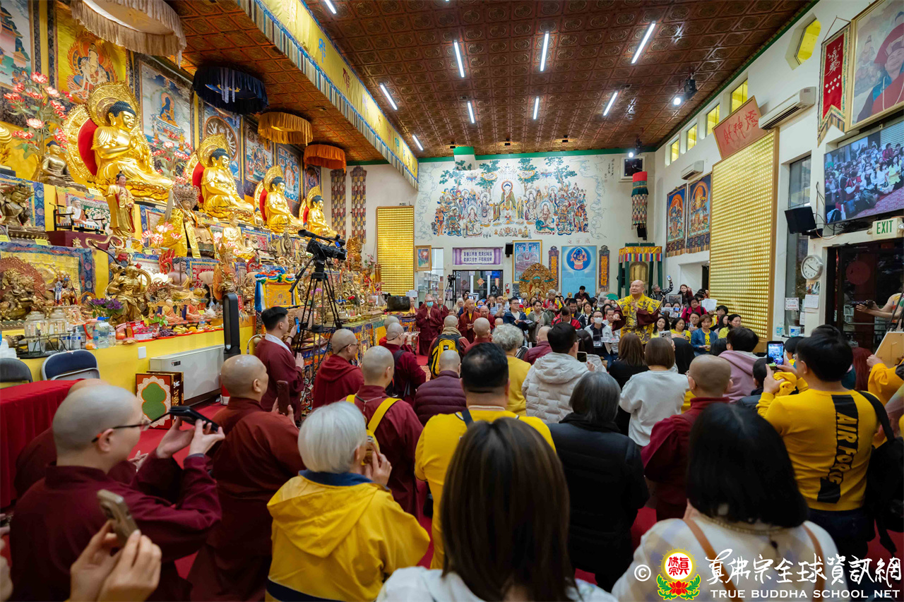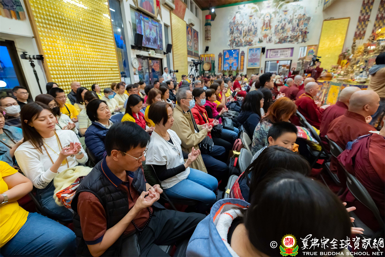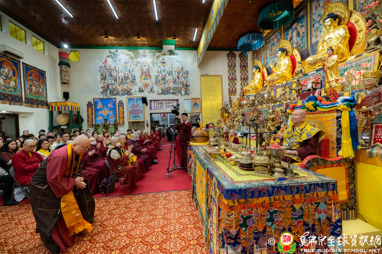 2026年4月25日週六晚上8時,美國西雅圖雷藏寺大雄寶殿裡,聖尊蓮生活佛盧勝彥帶領來自世界各地的四衆弟子同修準提佛母本尊法並講授《大佛頂首楞嚴經》。