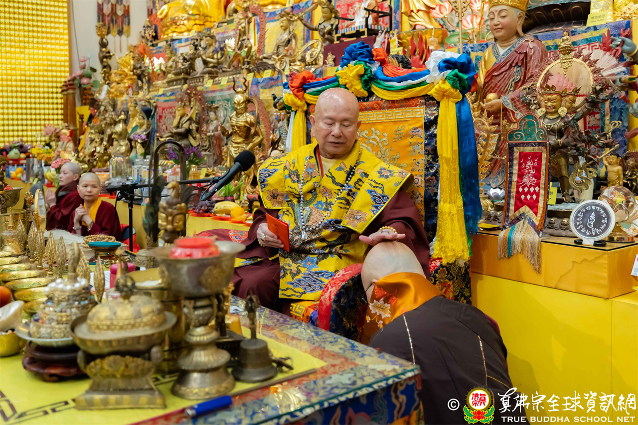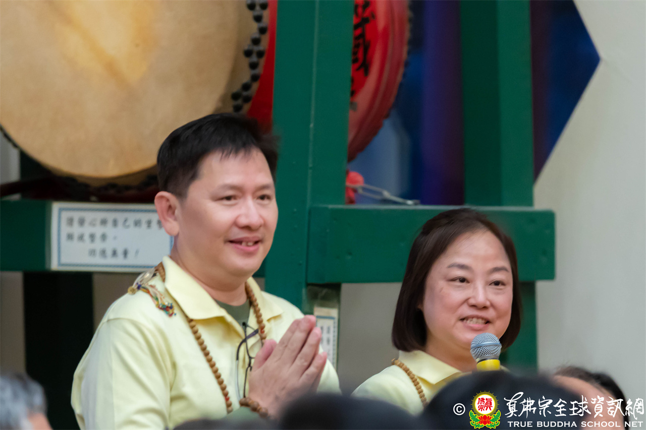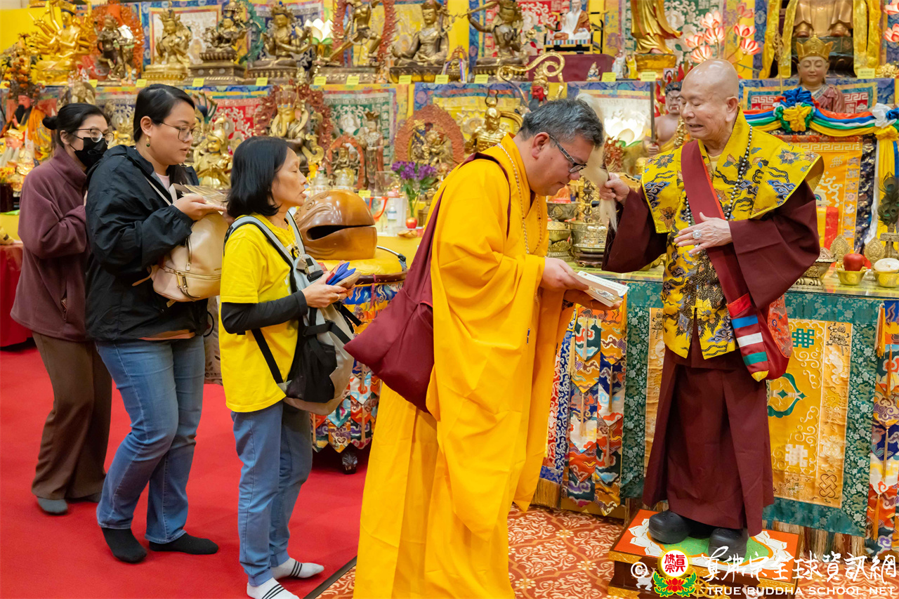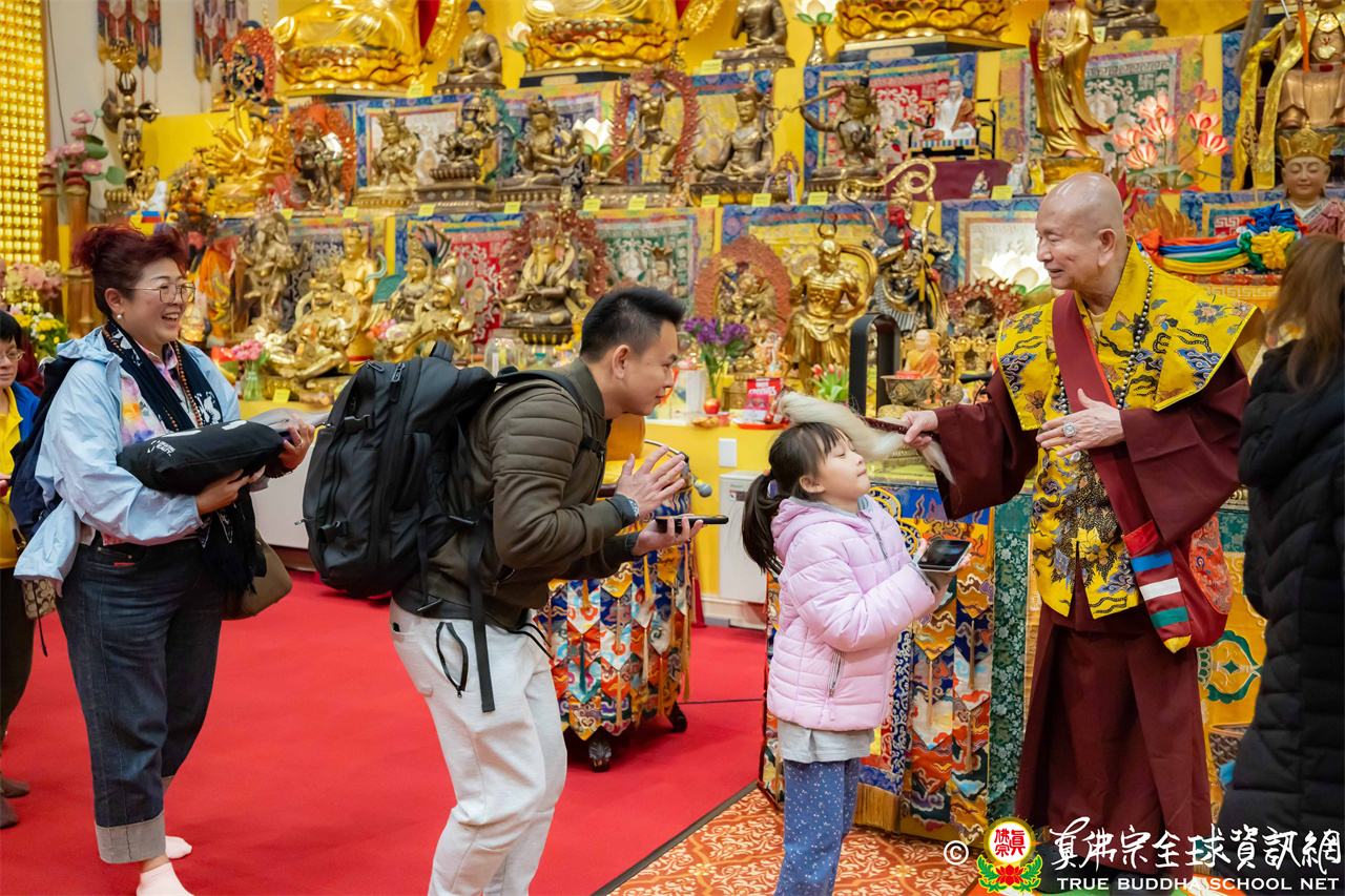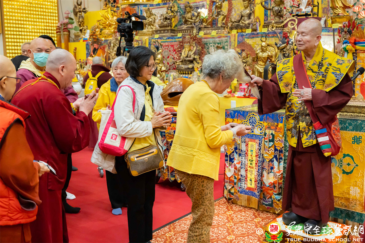 聖尊精闢寶貴的法語開示後,加持大悲咒水、開光佛像,最後持拂塵一一加持與會大眾。