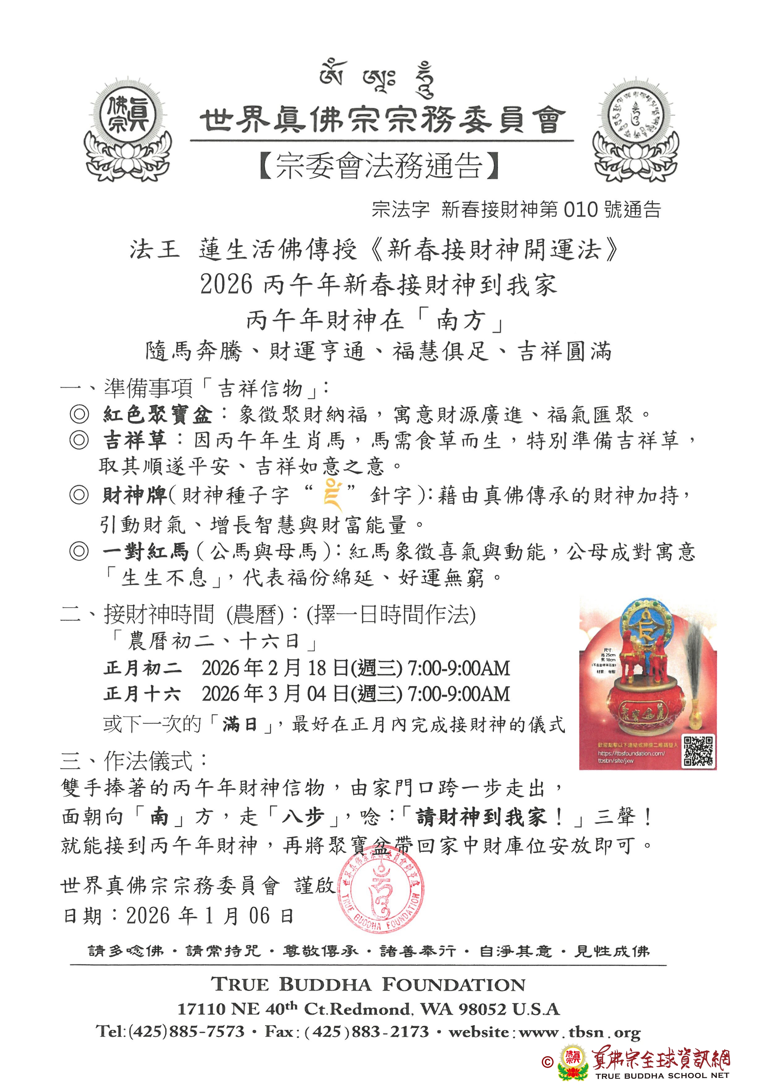 宗法字 新春接財神第010號通告